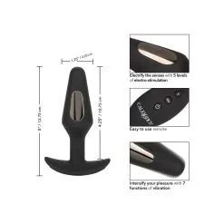 De elektrostimulatieprobe met afstandsbediening bevat 5 onafhankelijke functies van e-stim-niveaus en 7 vibratiefuncties voor opwindend plezier.
