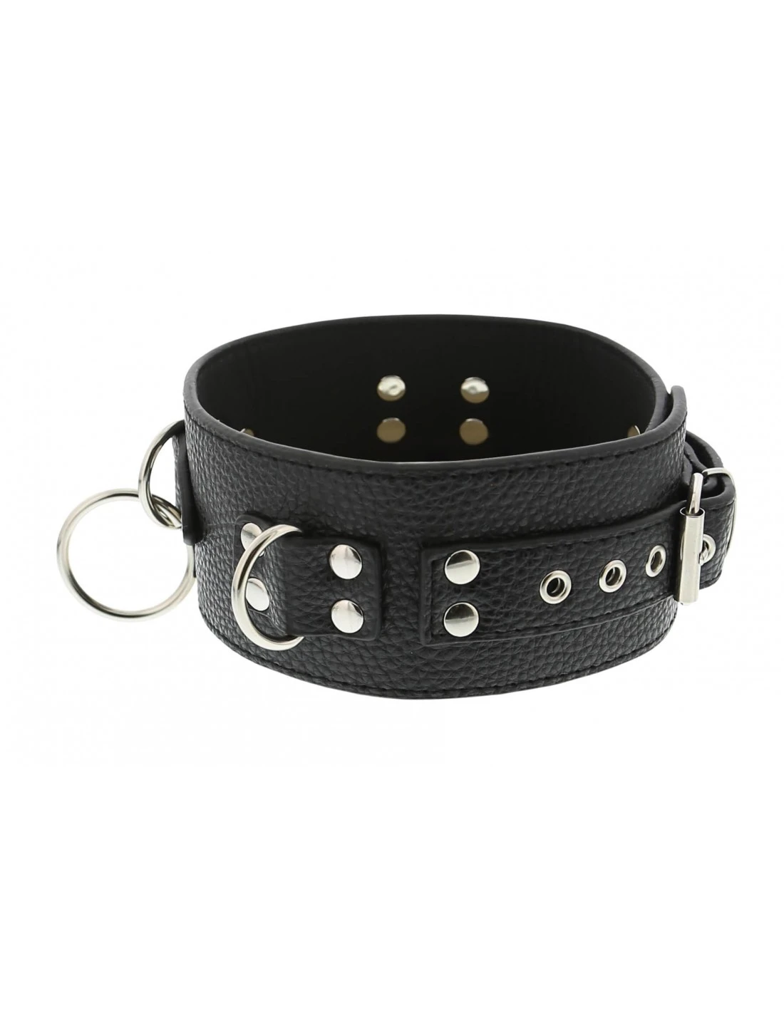 De halsband en de boeien kunnen versteld worden met de metalen gespen.