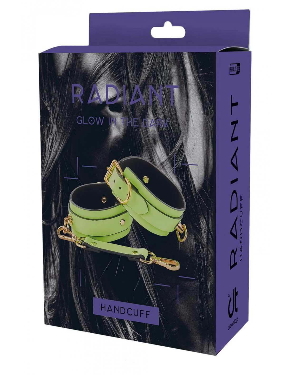 Dit paar glow-in-the-dark handboeien van Dream Toys’ label Radiant heeft nikkelvrije metalen details.