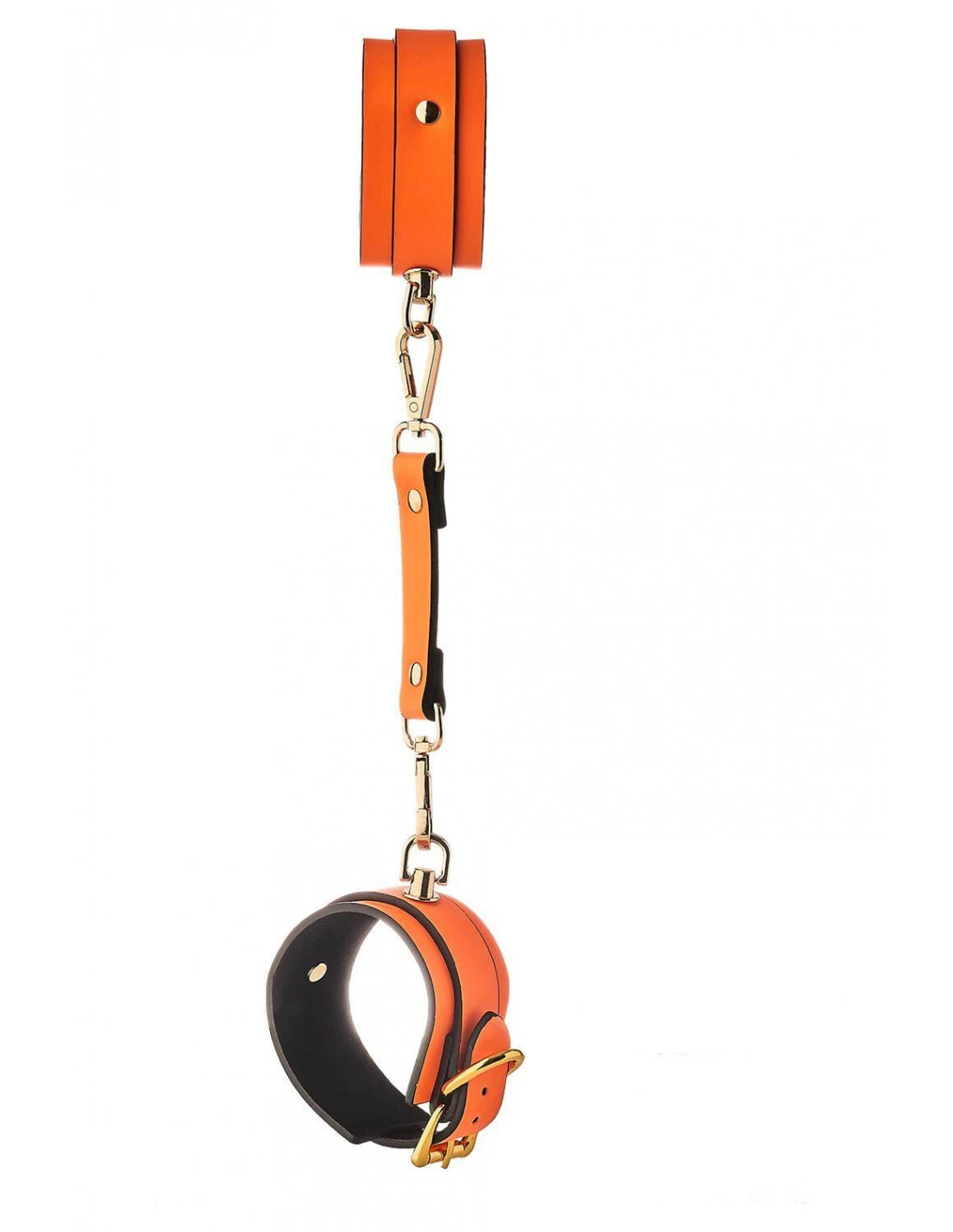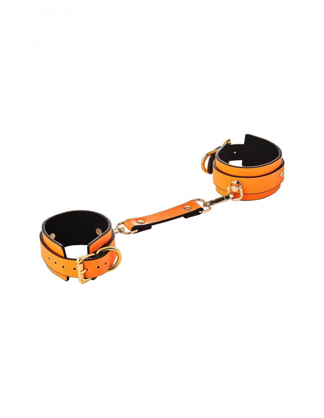 De polsboeien zijn volledig verstelbaar met de gespen. Een ketting van 10 cm lang houdt de manchetten bij elkaar.