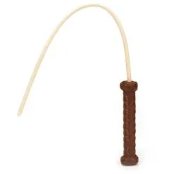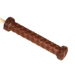 De stok bestaat uit een houten handvat omwikkeld met hand gevlochten, echt rundleer en een ratanstok van 43,5 cm.