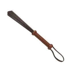 De stok bestaat uit een houten handvat omwikkeld met hand gevlochten, echt rundleer en een ratanstok van 43,5 cm.