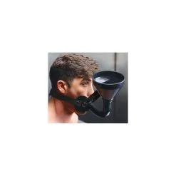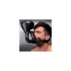 De open ball gag is voorzien van een trechter waarmee alle gewenste vloeistoffen naar de mond kunnen stromen.