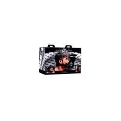 De knevel wordt op zijn plek gehouden door een sterke, verstelbare band met een brede gesp.