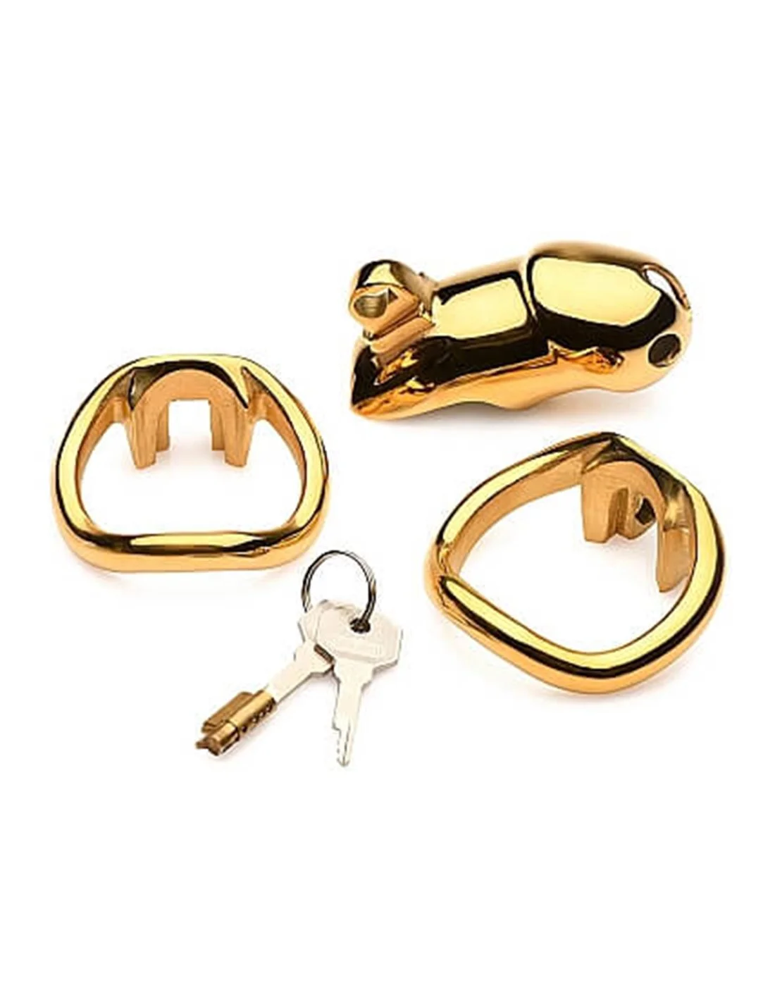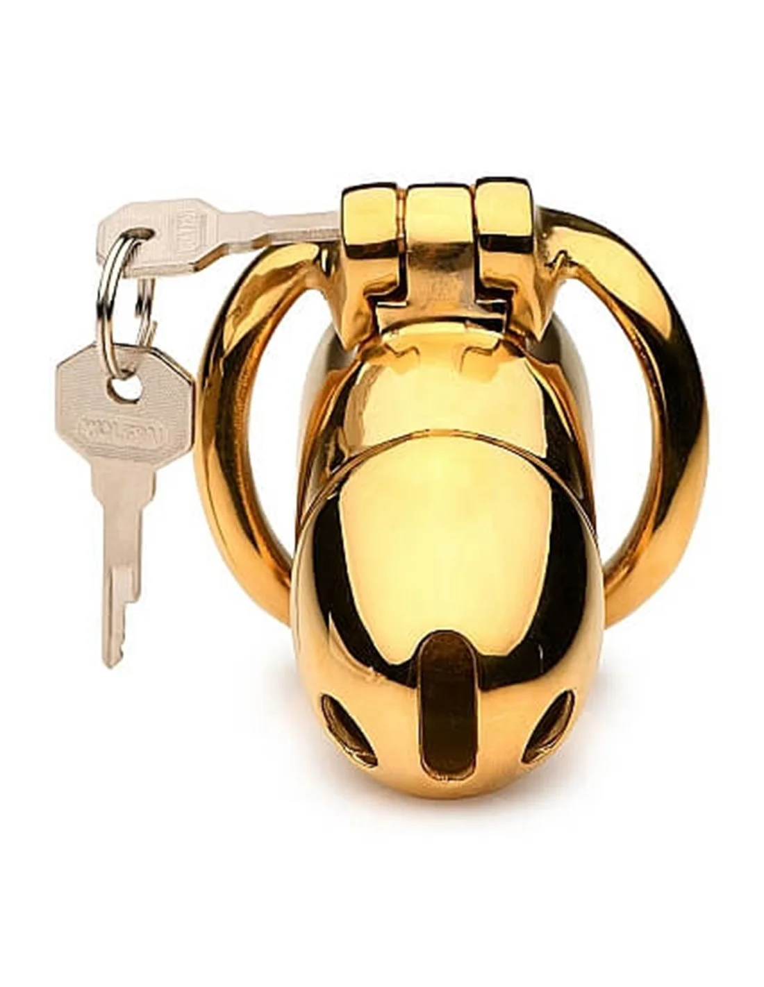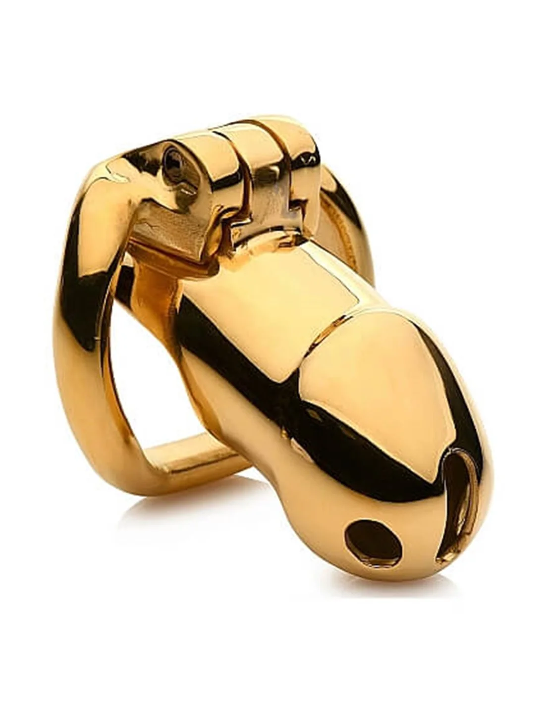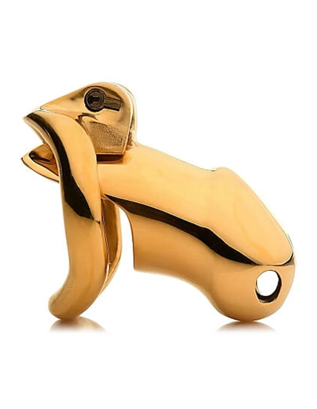 Deze vergulde kuisheidskooi met slot is het perfecte cadeau voor je speciale onderdanige of minnaar. Houd ze opgesloten, maar met voortreffelijke zorg en eersteklas stijl!