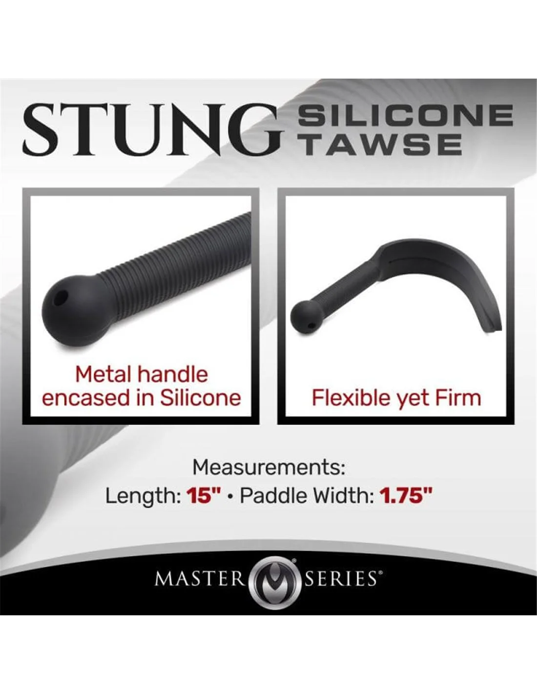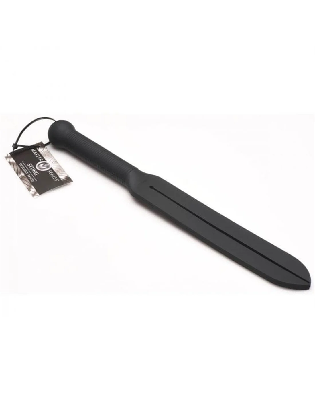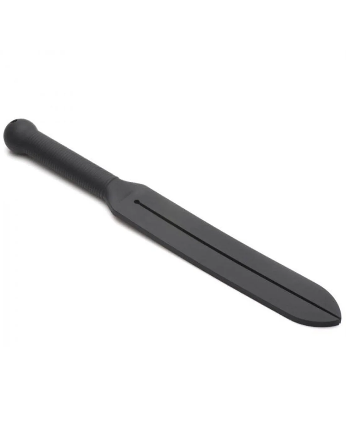 Deze siliconen zweep bestaat uit twee stukken siliconen naast elkaar en een metalen handvat.
