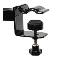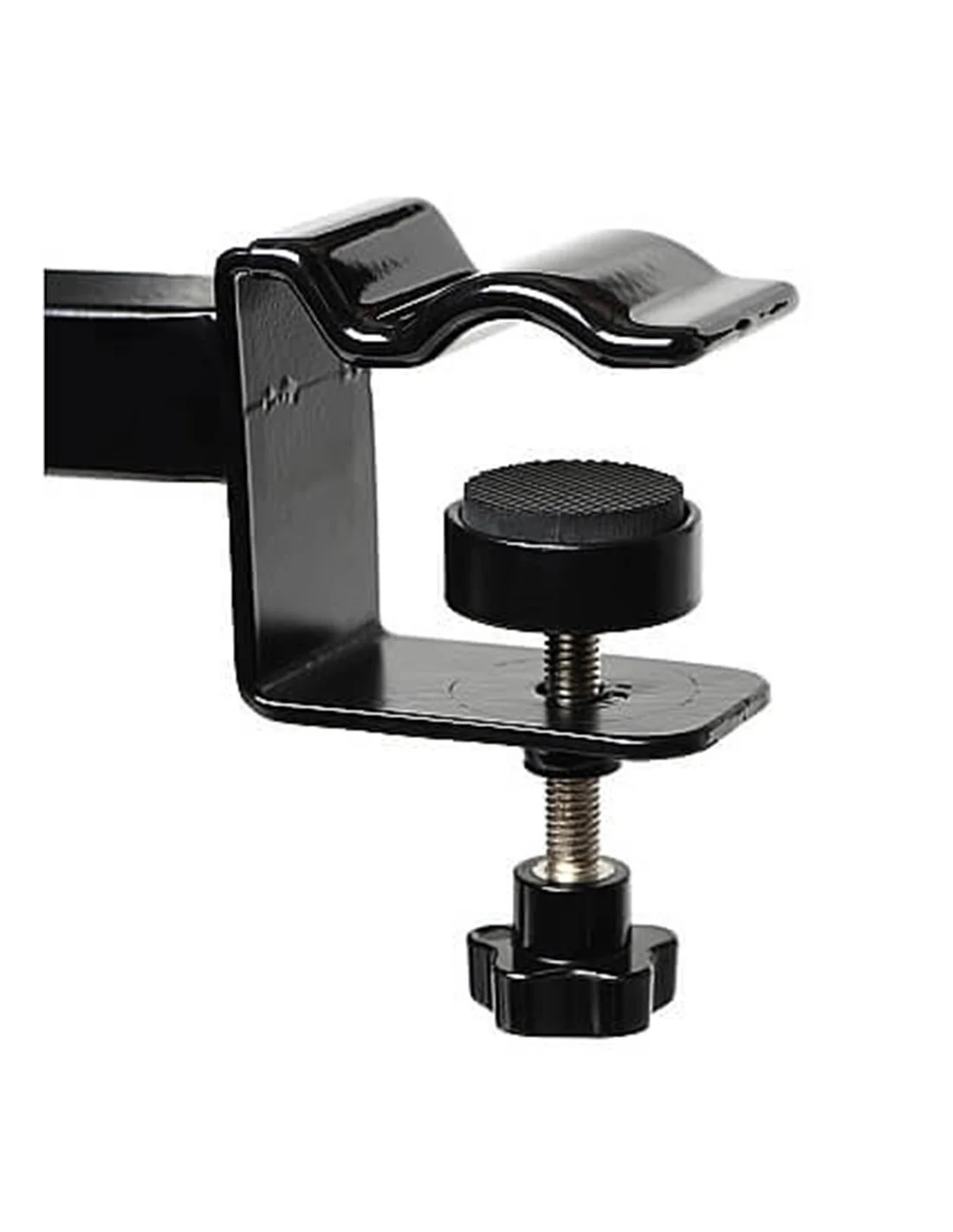 Eenmaal gemonteerd, lijnt u de stabiliserende arm uit met de stoel of het meubel van uw keuze. Schroef de klem op het meubel waarop je gaat zitten om hem op zijn plaats te houden. Druk op de basis zodat de zuignappen naar de vloer zuigen.