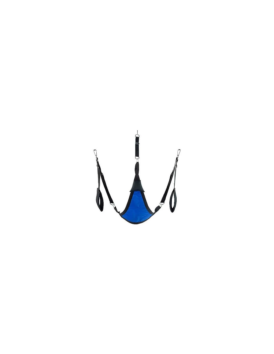 de 4 hangers met de metalen karabijnhaken / de gewatteerde voetsteunen (11cm breed) / de zwarte driehoek kussen (24 x 20cm) Materiaal: