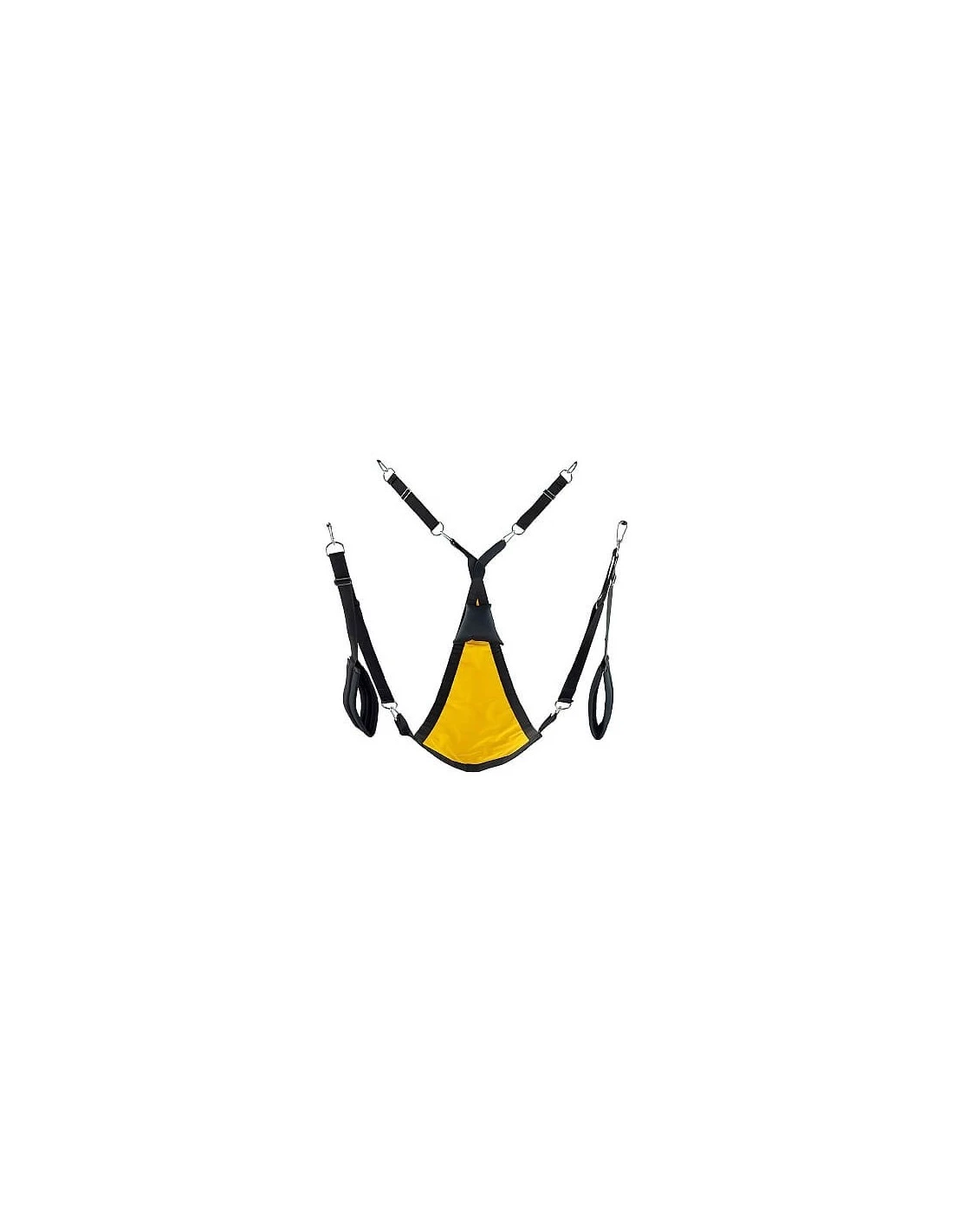 Deze gele stoffen sling is ontworpen met een driehoekige vorm en Camouflage stof.