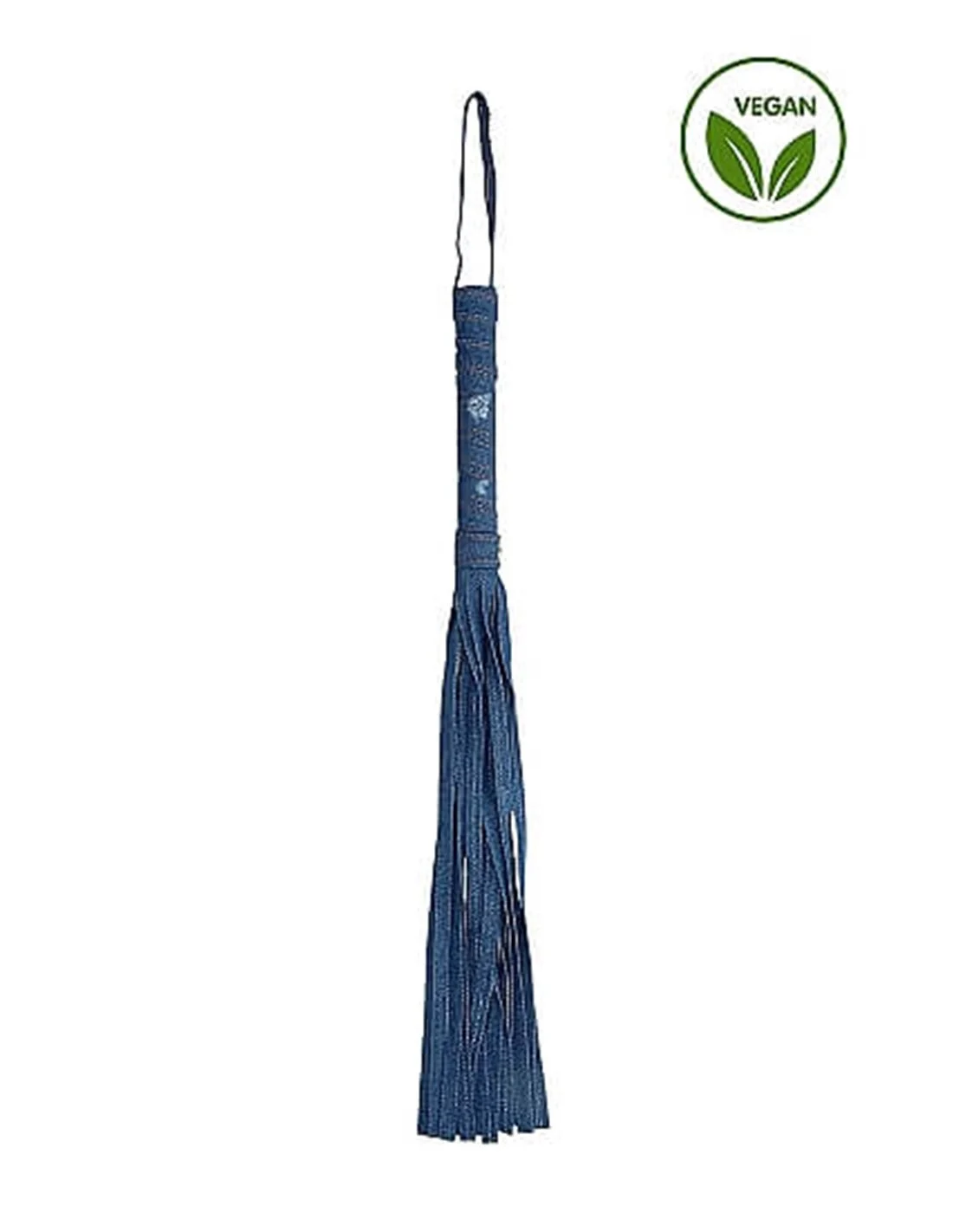 Het stevige handvat, volledig omwikkeld met denim, zorgt voor de perfecte grip om plagerige slagen of stevige zweepslagen uit te delen met een bevredigende tinteling door in totaal 40 lange soepele slierten/ strengen (29 cm/11.5″).