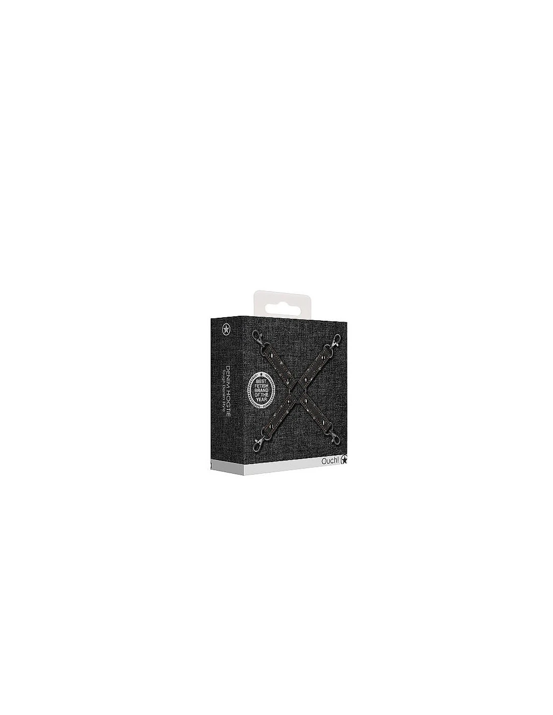 Deze trendy, in denim uitgevoerde, hogtie zal zeker niet misstaan in iedere hoogwaardige BDSM-collectie van zowel beginners als gevorderden.