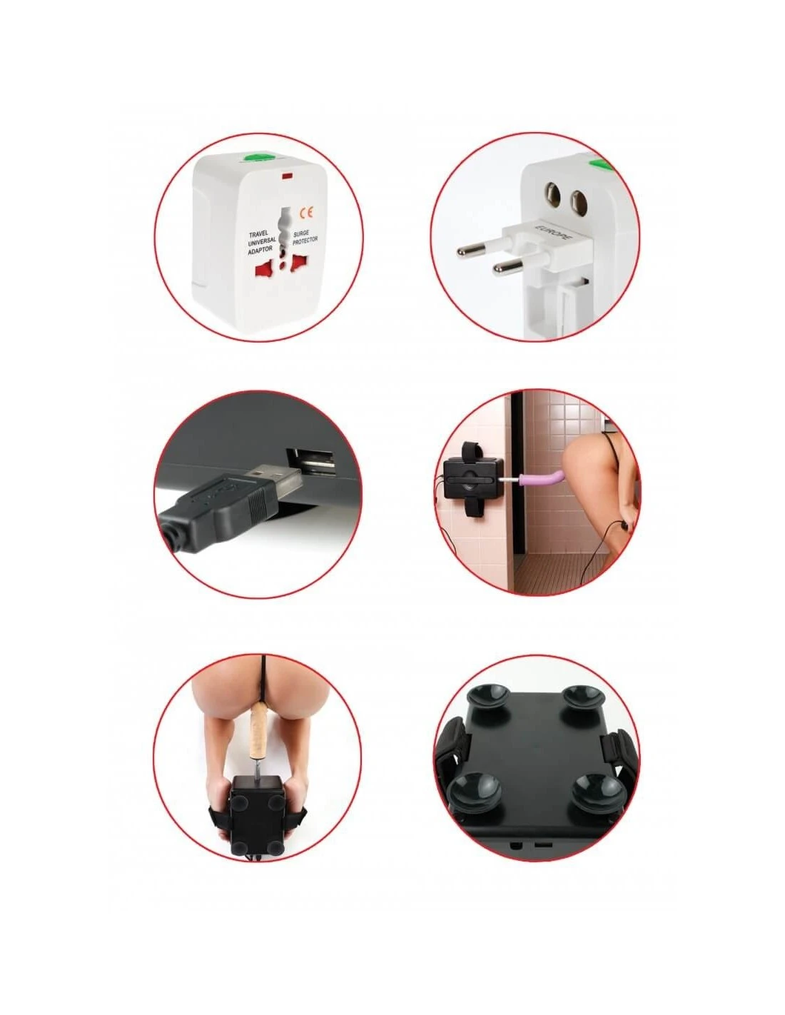 De Sex Machine werkt op 100–240V, en door verschillende tandvariaties op de universele adapter te kiezen, past je draagbare seksmachine zich gemakkelijk aan de spanningsvereisten van elk land aan.