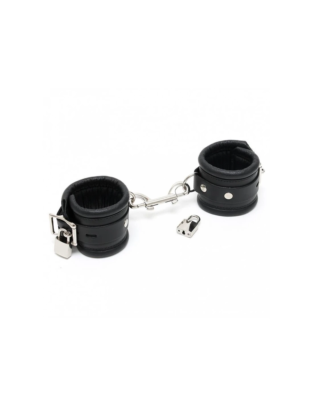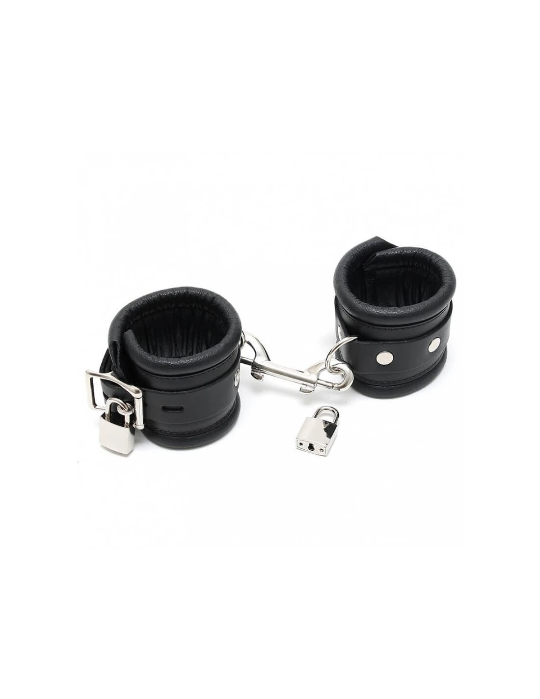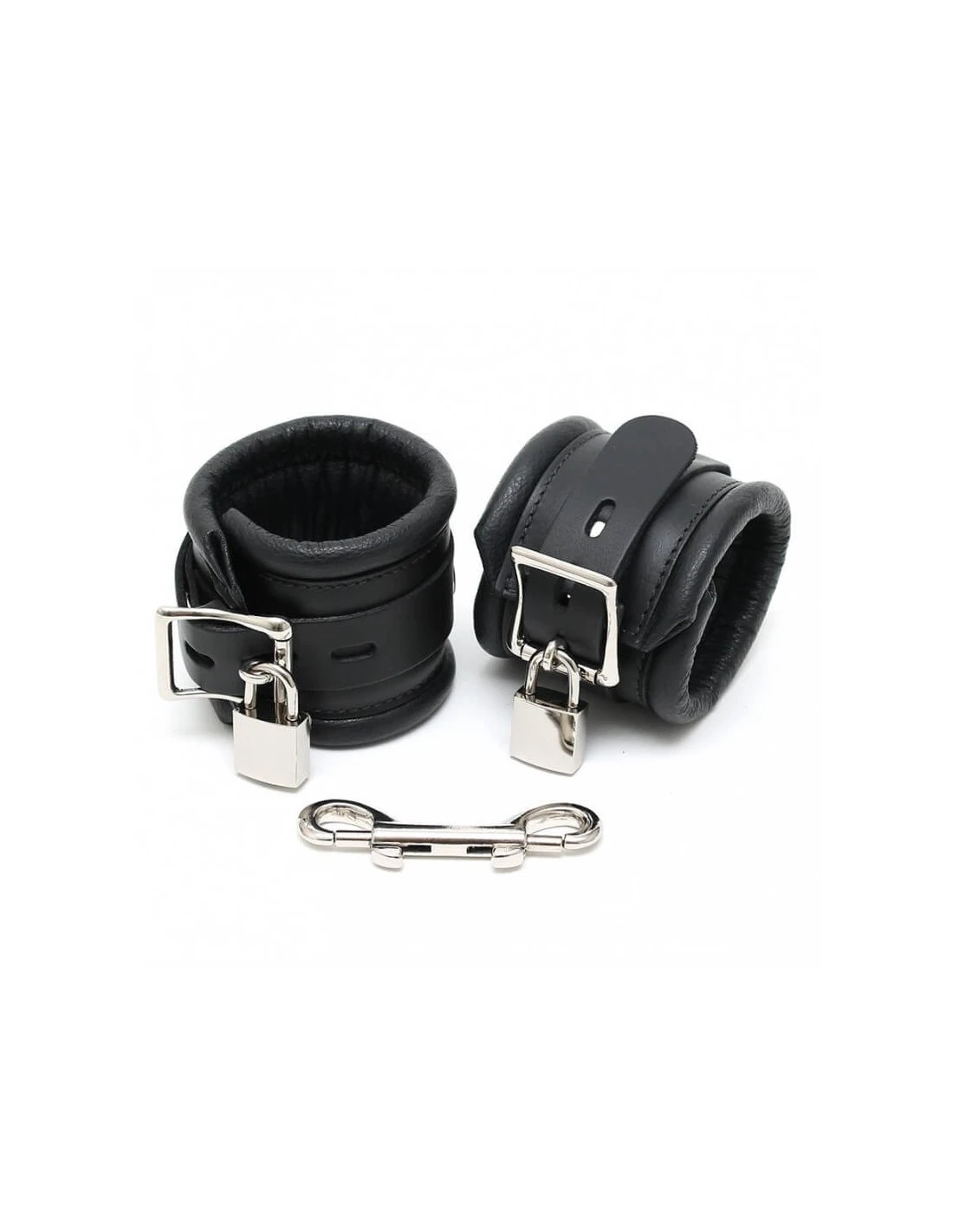 Rimba Bondage Play. Met kussen gevoerde echt lederen handboeien met afsluitbare gespen en hangsloten.