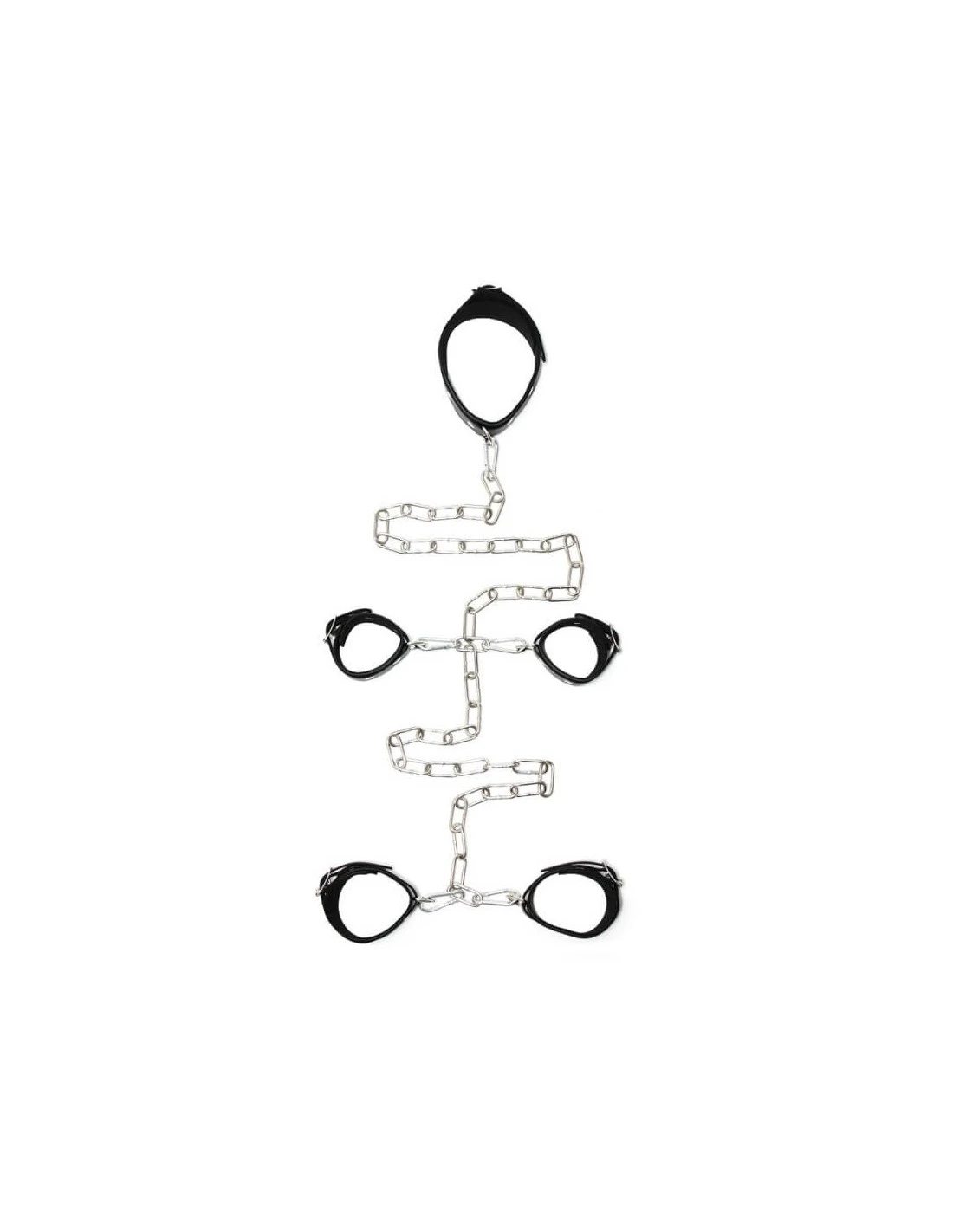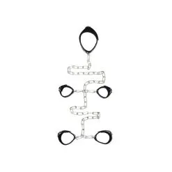 Deze combinatie bestaat uit een halsboei, een paar handboeien en een paar voetboeien, 5 karabijnhaken en een massief metalen ketting.