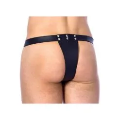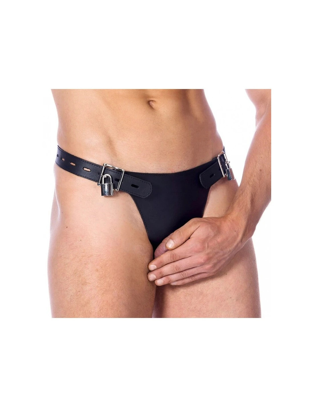 Echt tuig lederen kuisheid slip met 2 hangsloten.