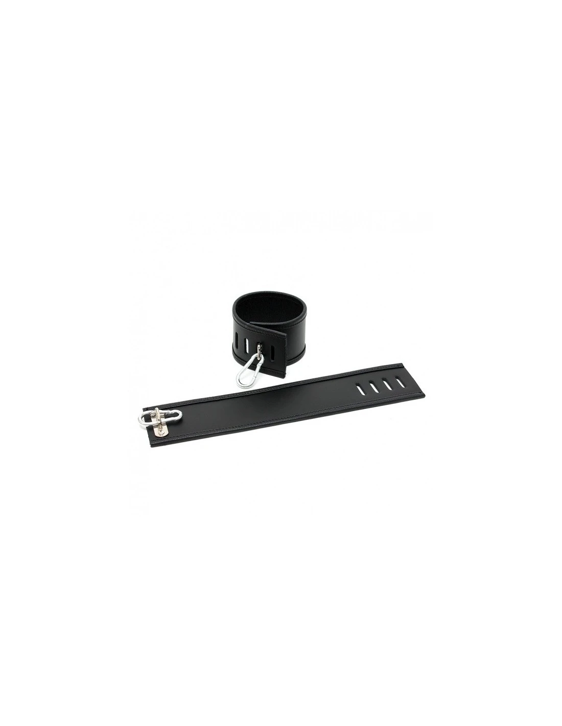 Luxe, dubbel rundslederen handboeien met metalen bruggen om de boeien te sluiten.