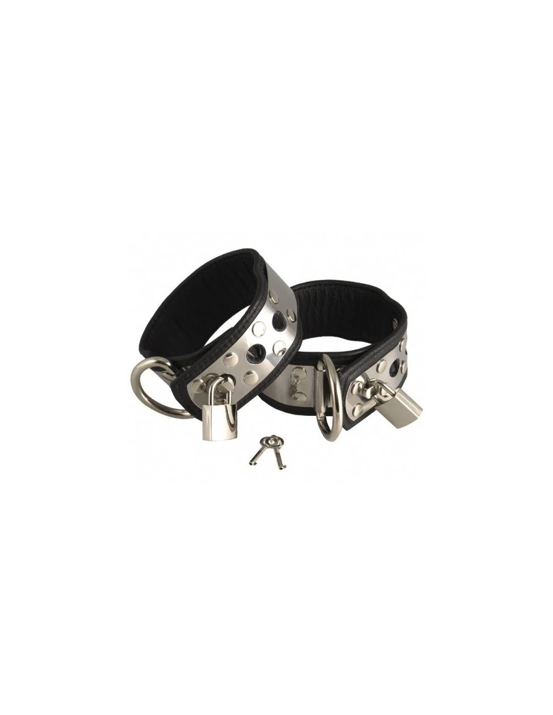 Deze leren enkelboeien zijn gemaakt van leer en metaal.