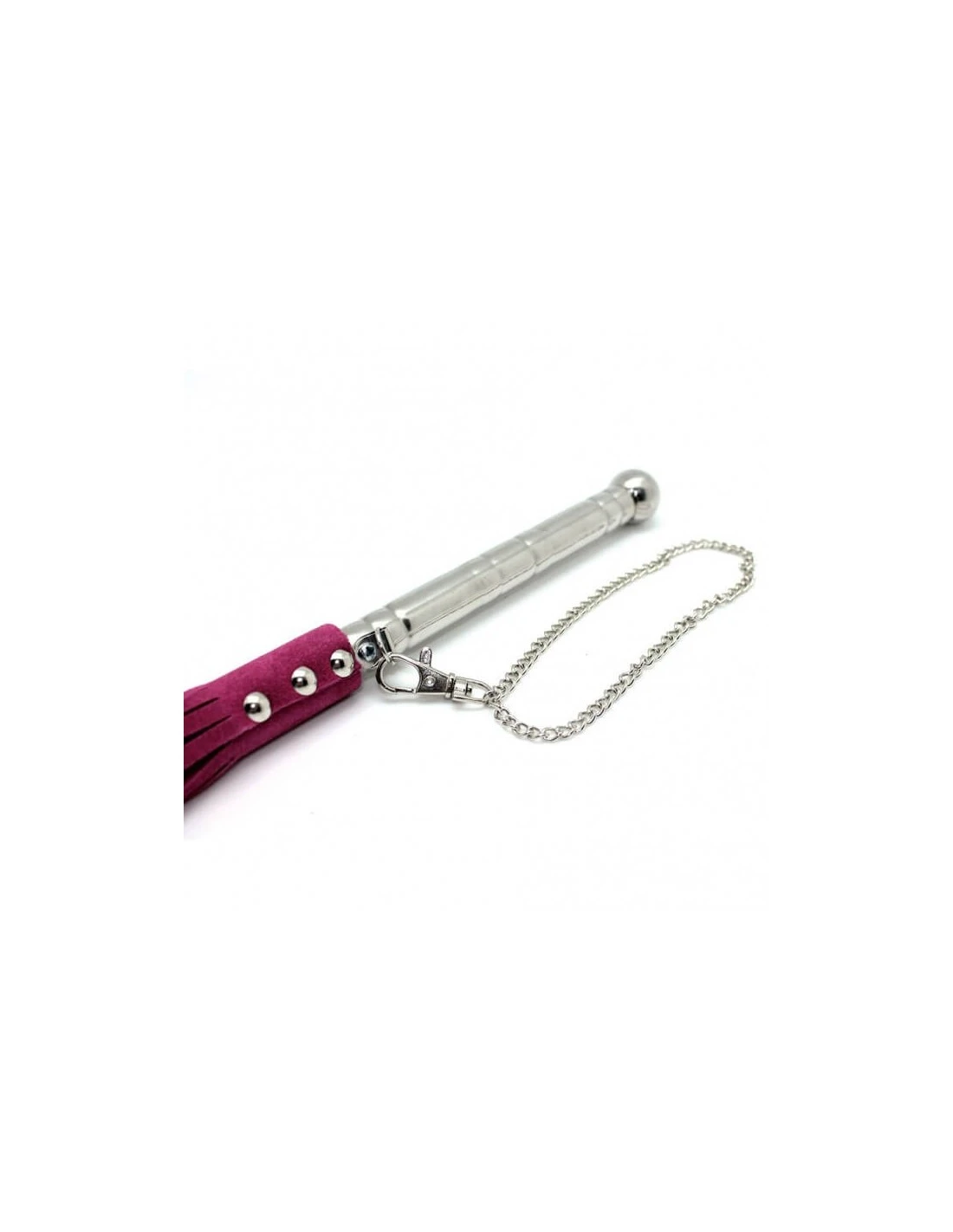 Deze roze zweep is gemakkelijk mee te nemen in een handtas.