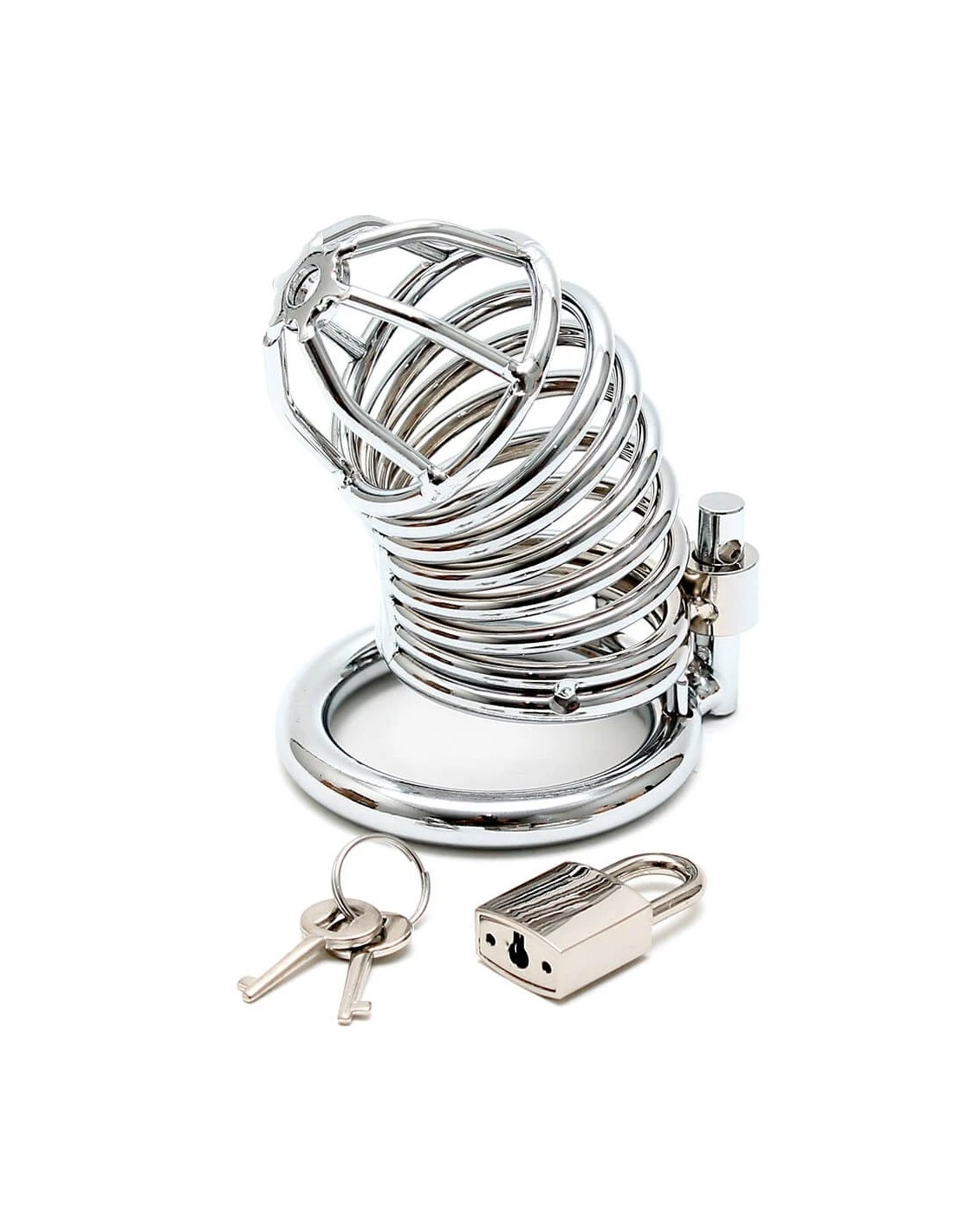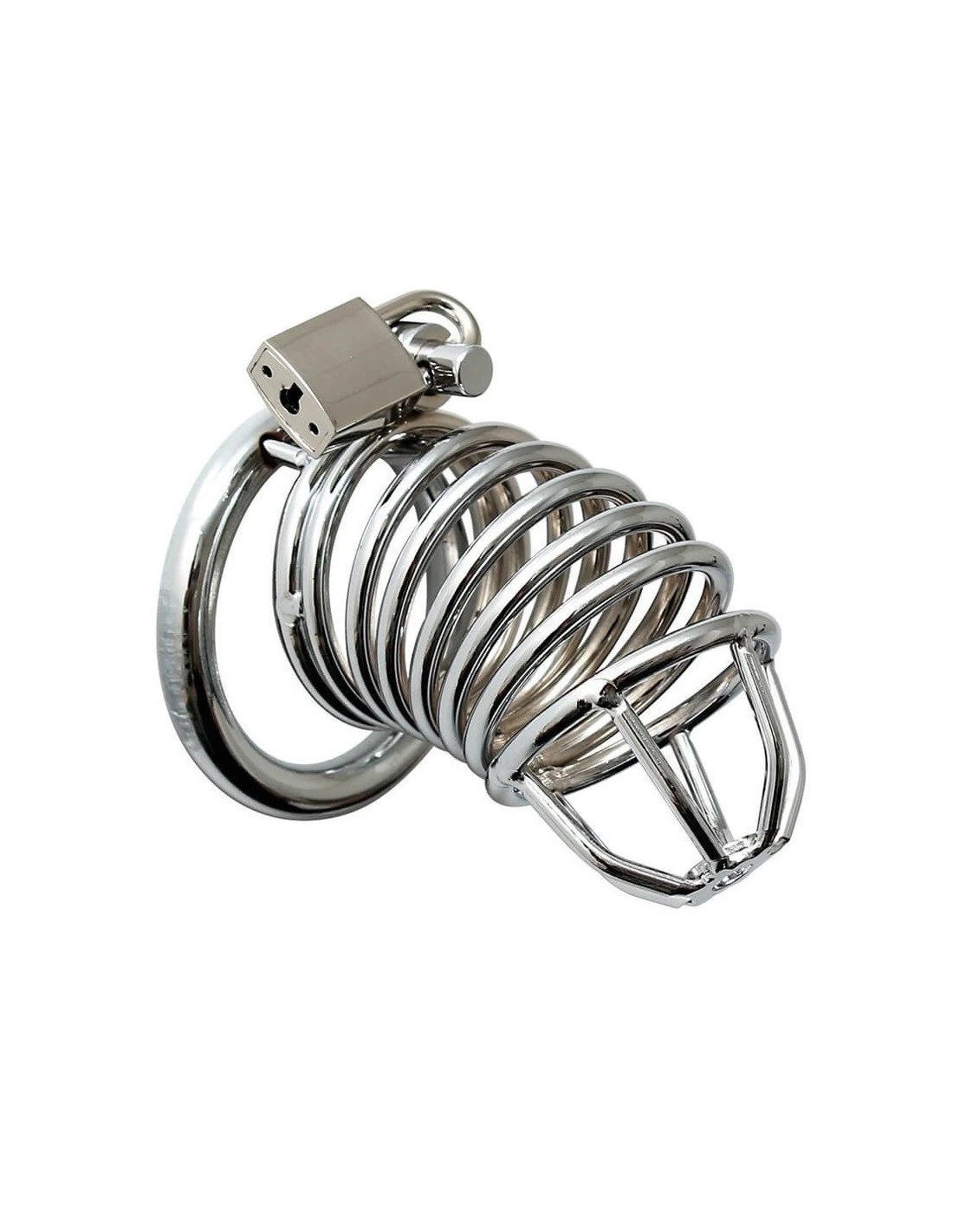 Deze metalen kuisheidsgordel voor mannen wordt geleverd met hangslot.