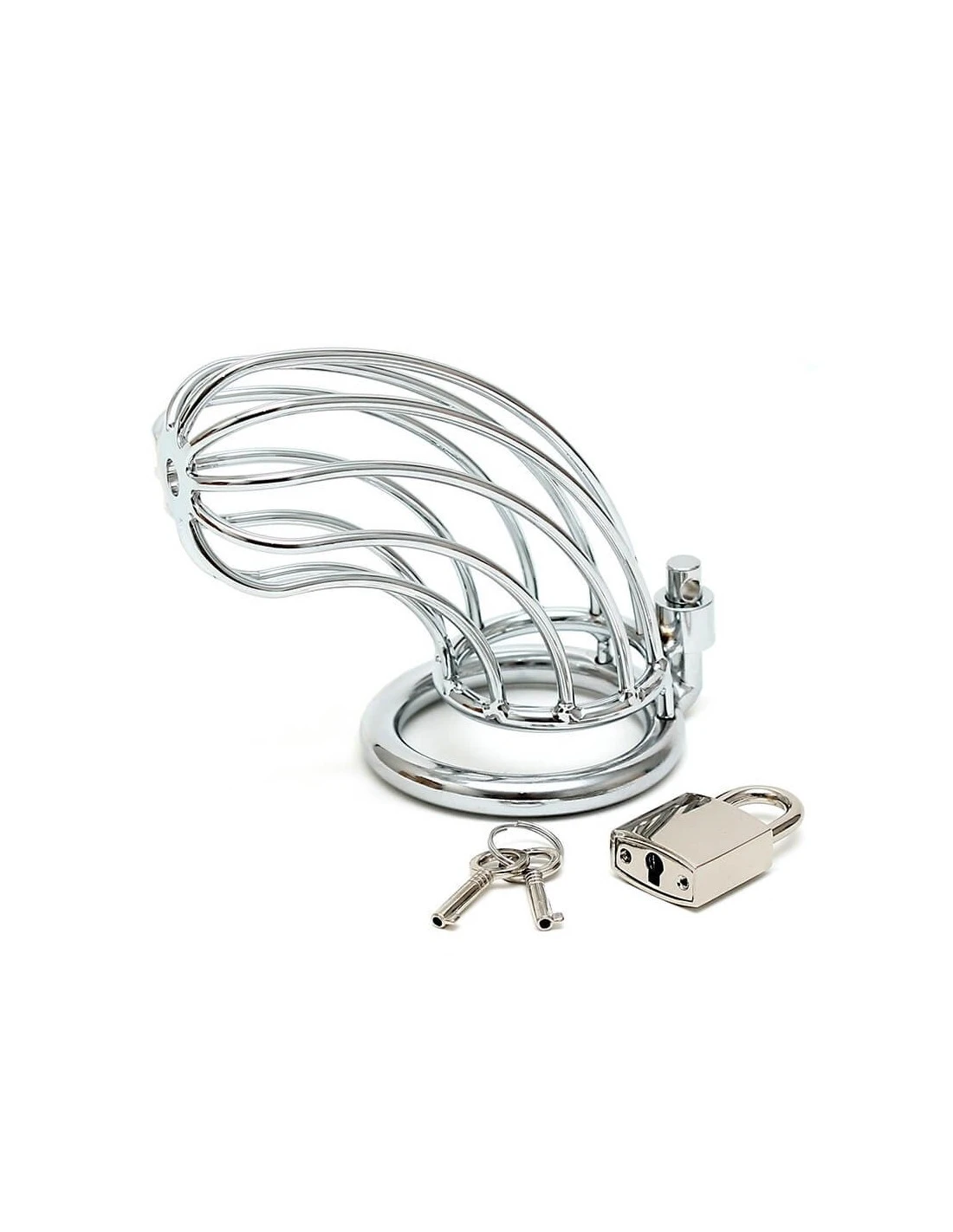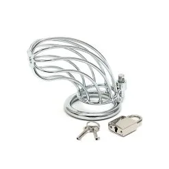 Deze metalen kuisheidsgordel voor mannen wordt geleverd met hangslot.