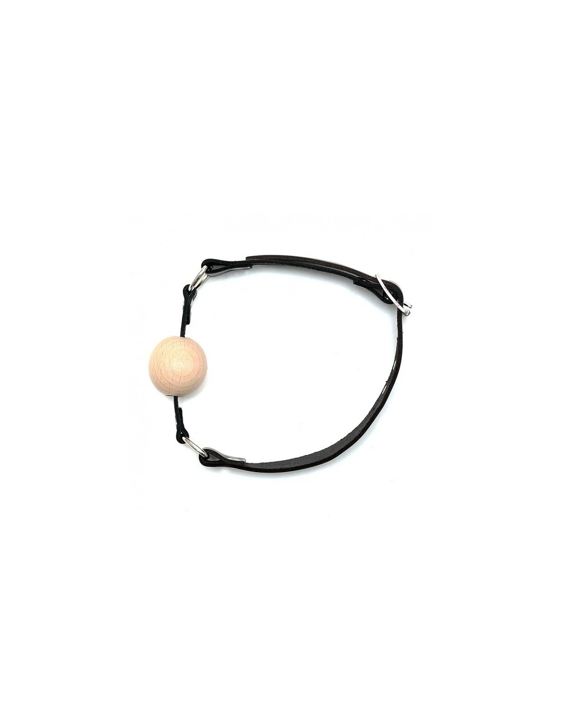 Lederen mondknevel met een massief houten bal met een doorsnede van 4 cm.
