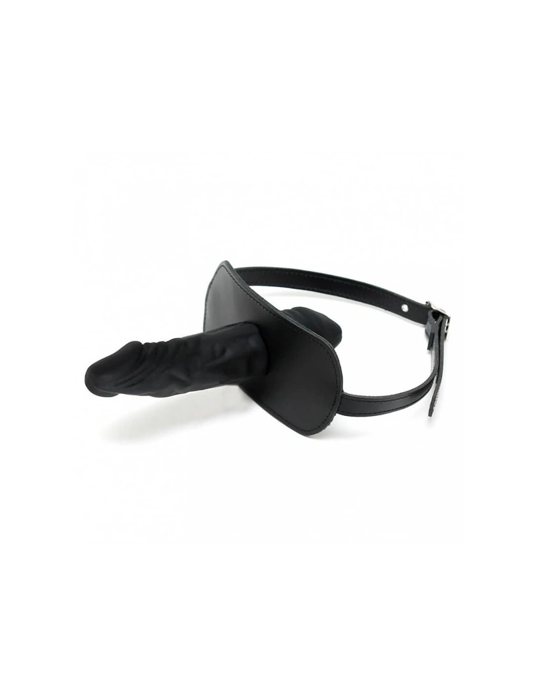 Deze mondknevel van het merk Rimba heeft een binnen en buitendildo gemaakt van latex.
