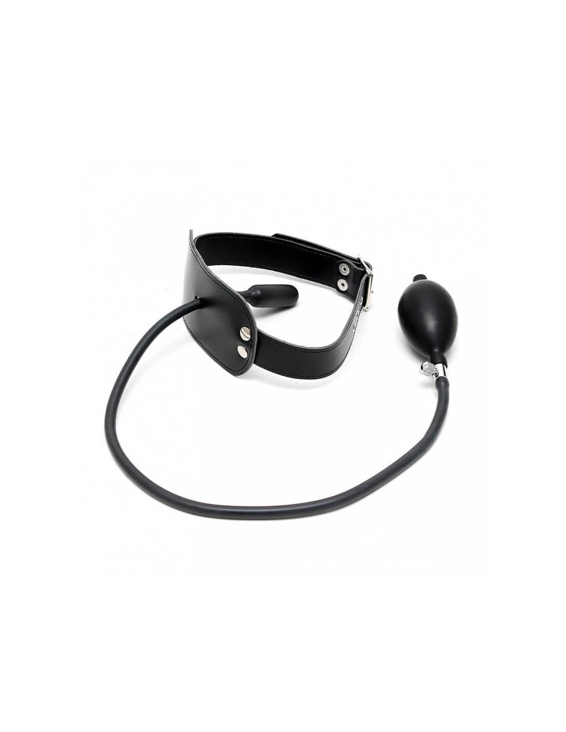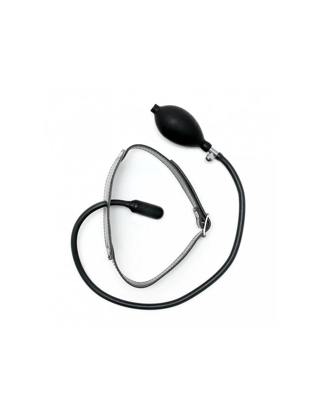 De knevel is verstelbaar met gespen en gemaakt van leer.