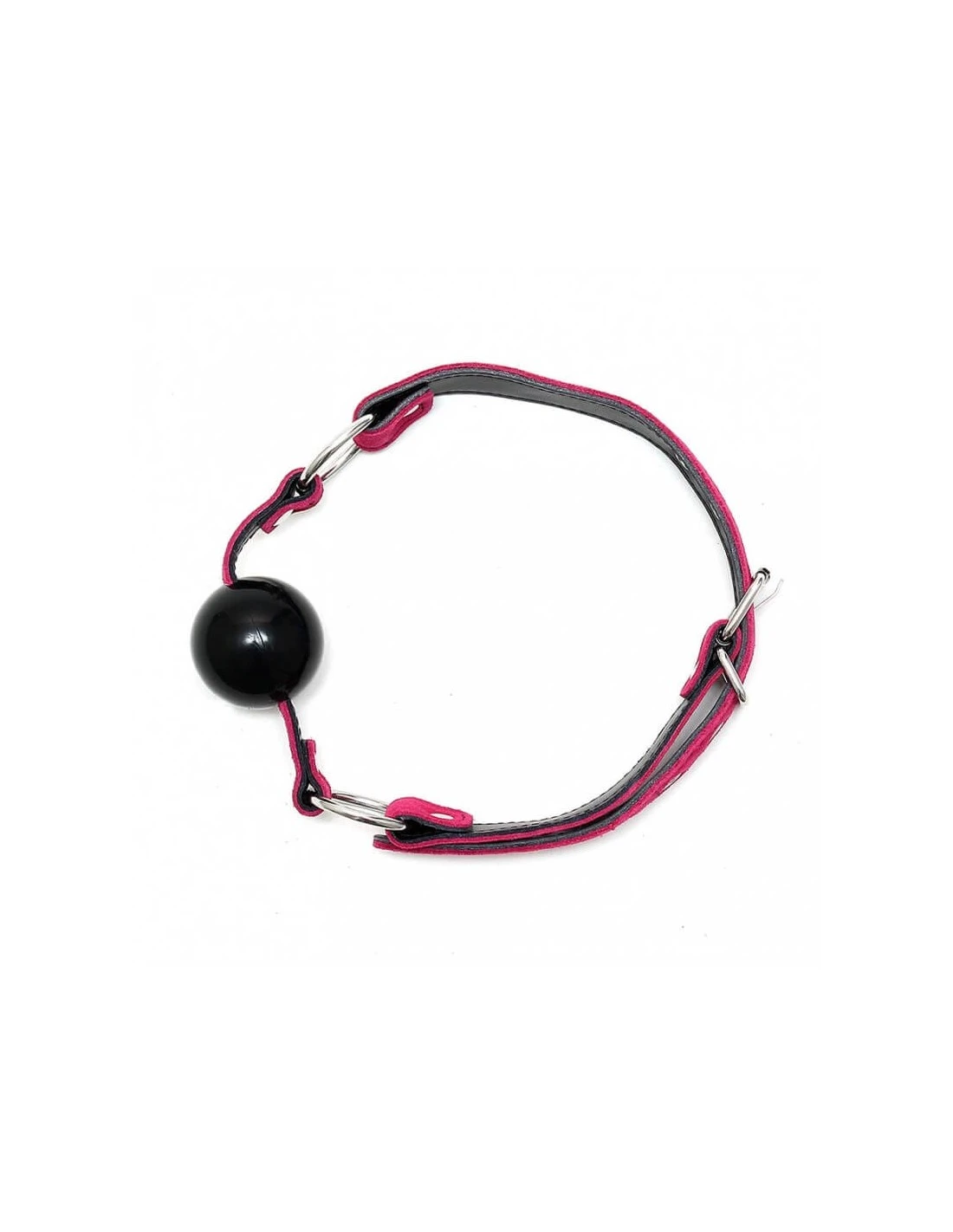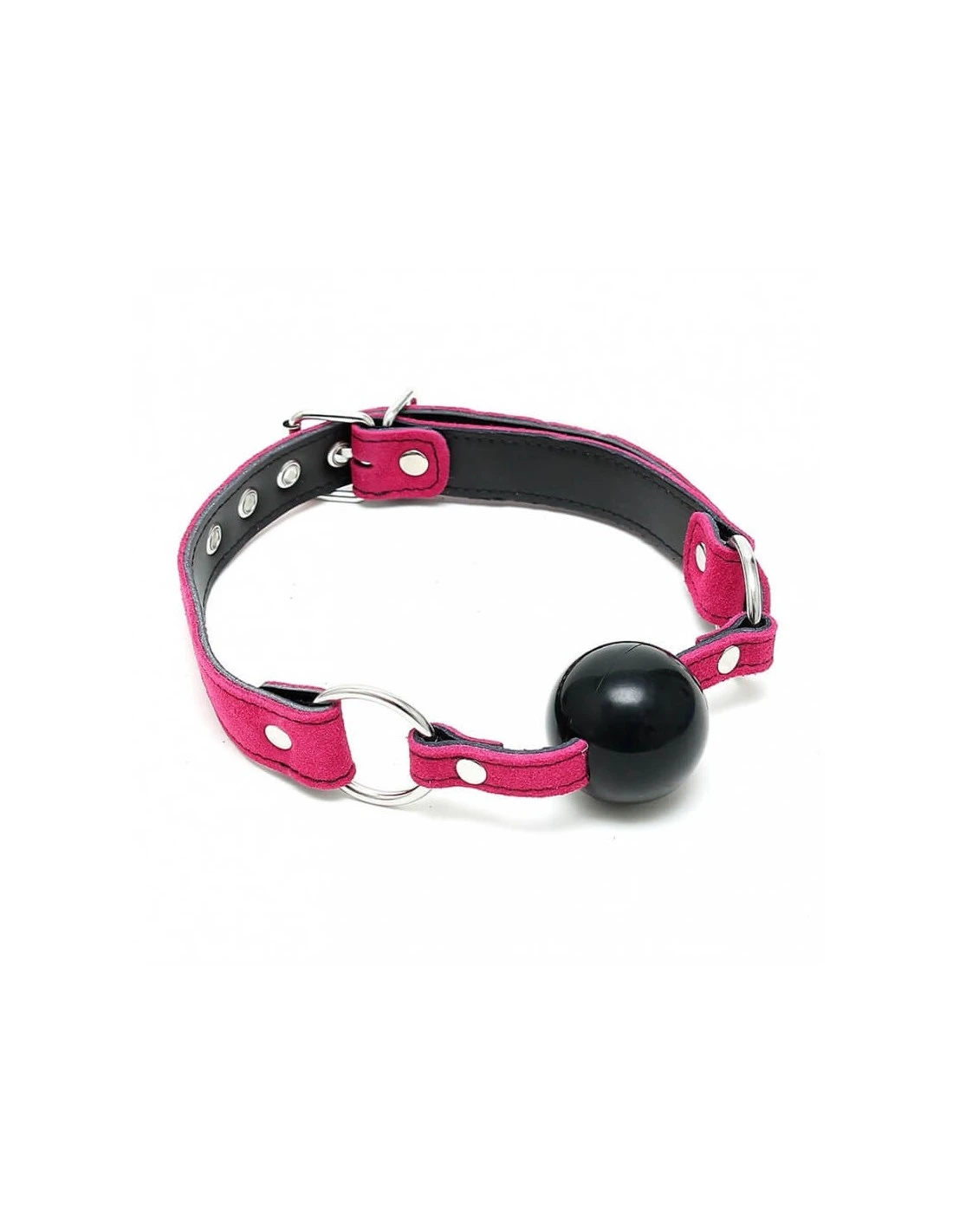 Deze mondknevel is gemaakt van leer en heeft een roze kleur.