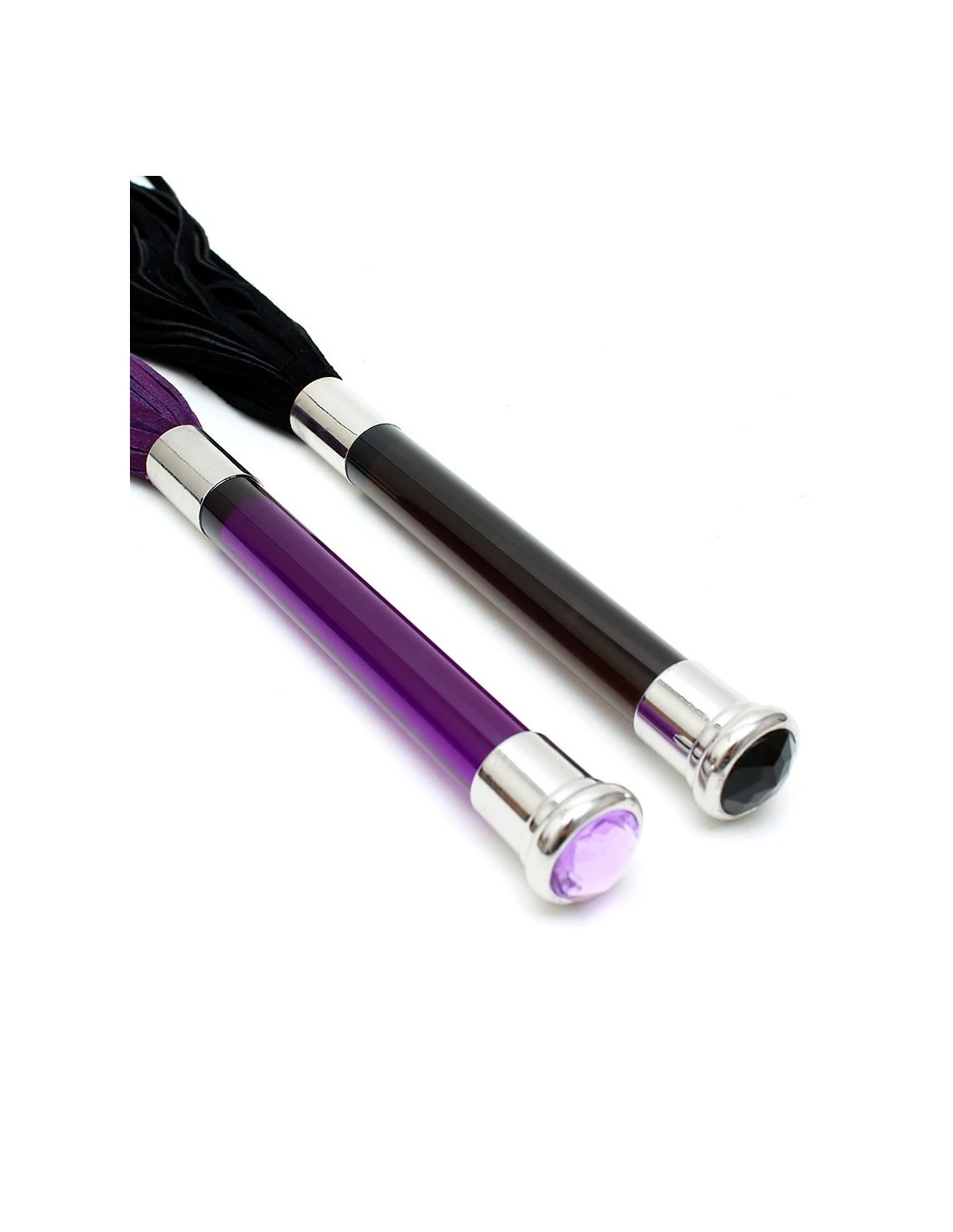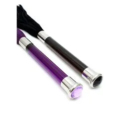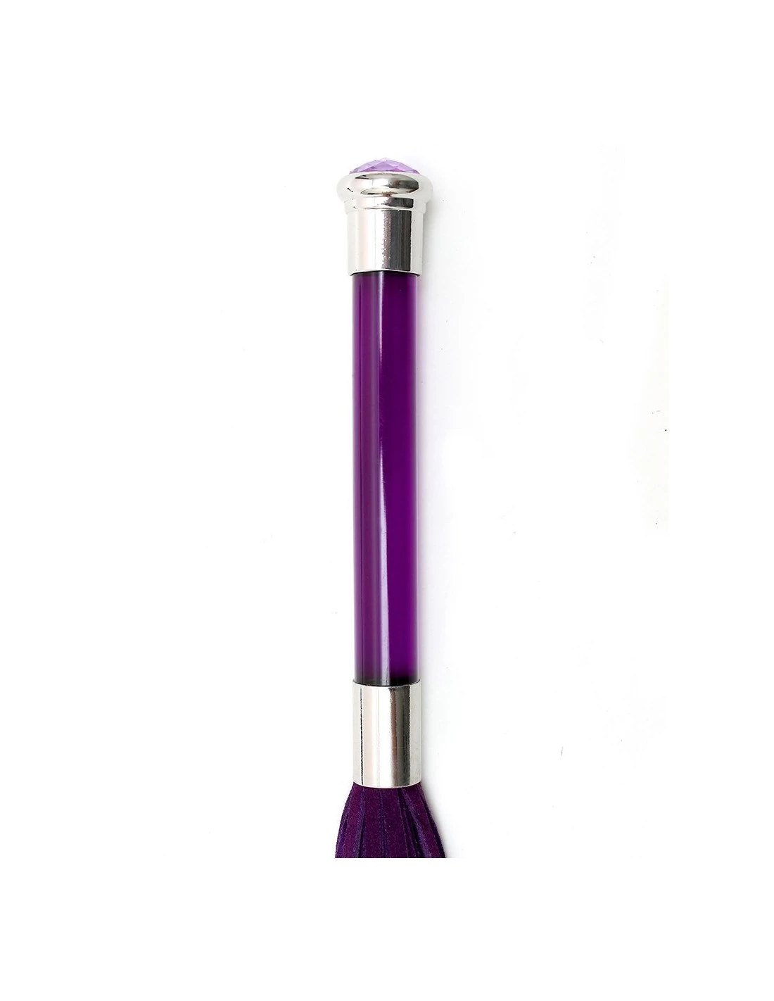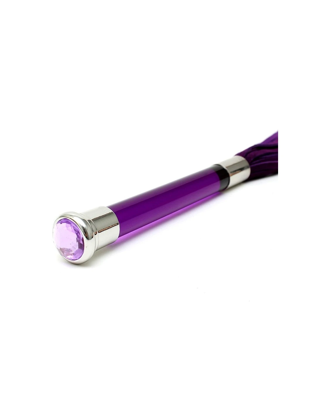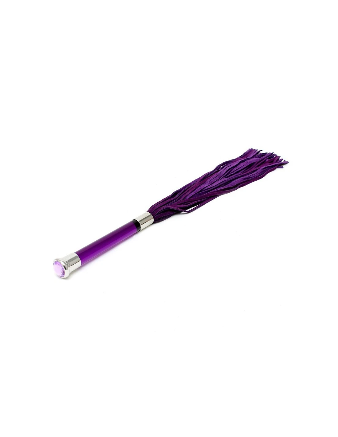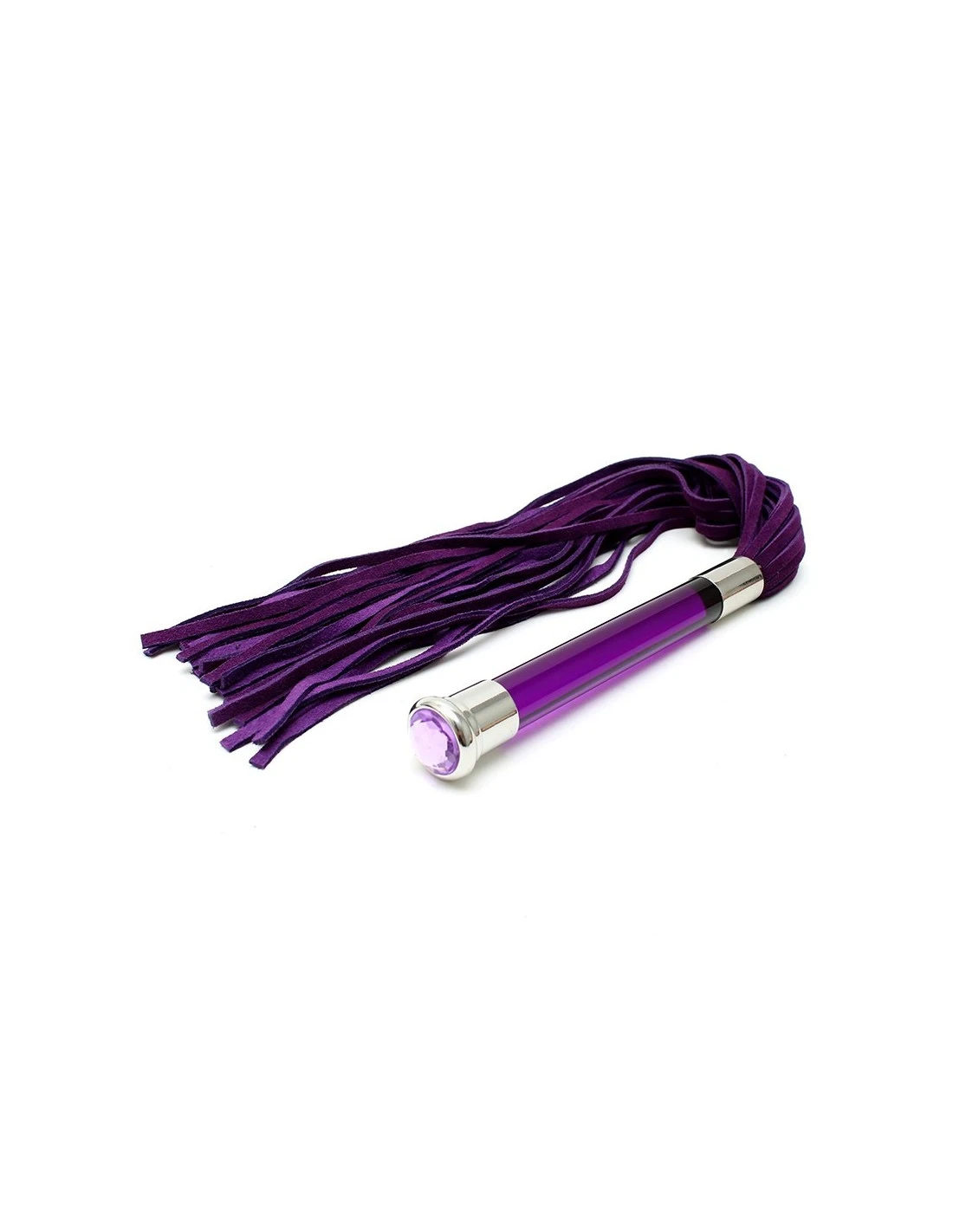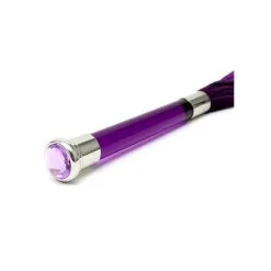 Deze flogger heeft een glazen handvat en kristal voor decoratie.