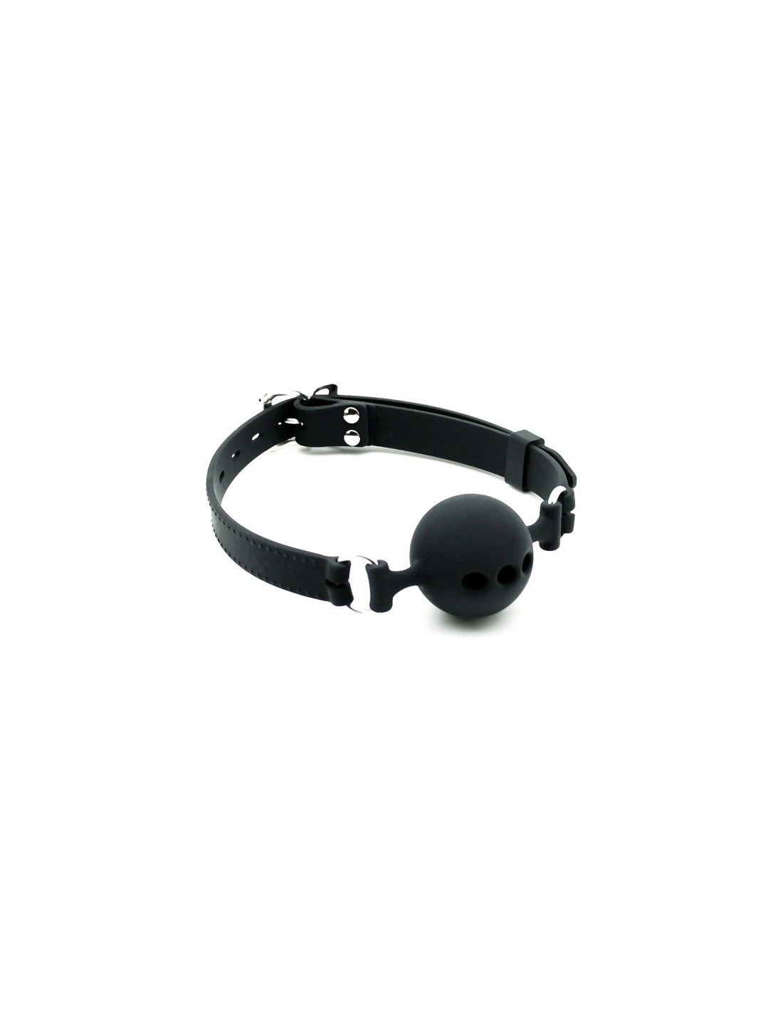 Silicone mondknevel met metalen gesp. De band is verstelbaar over 8 gaten.