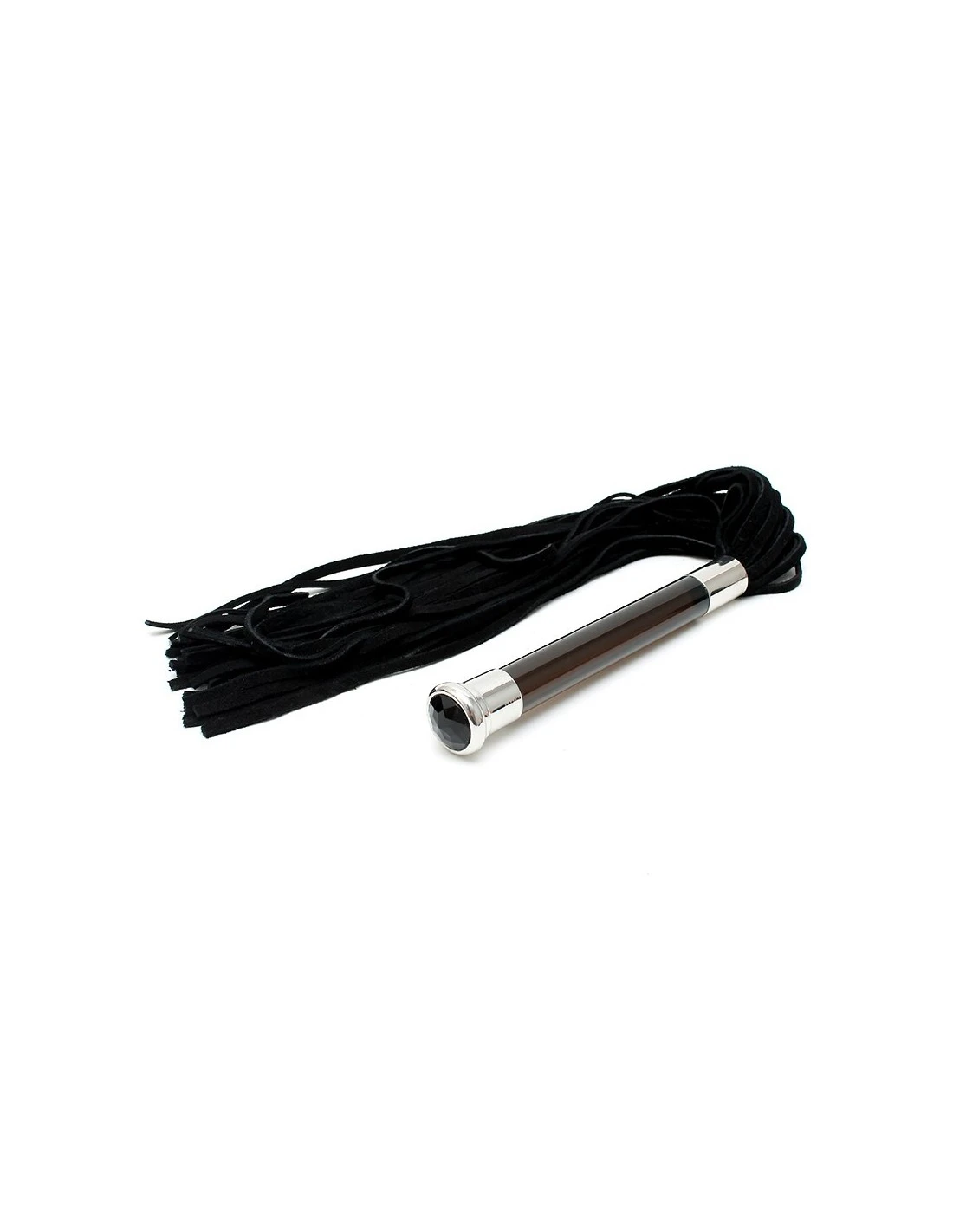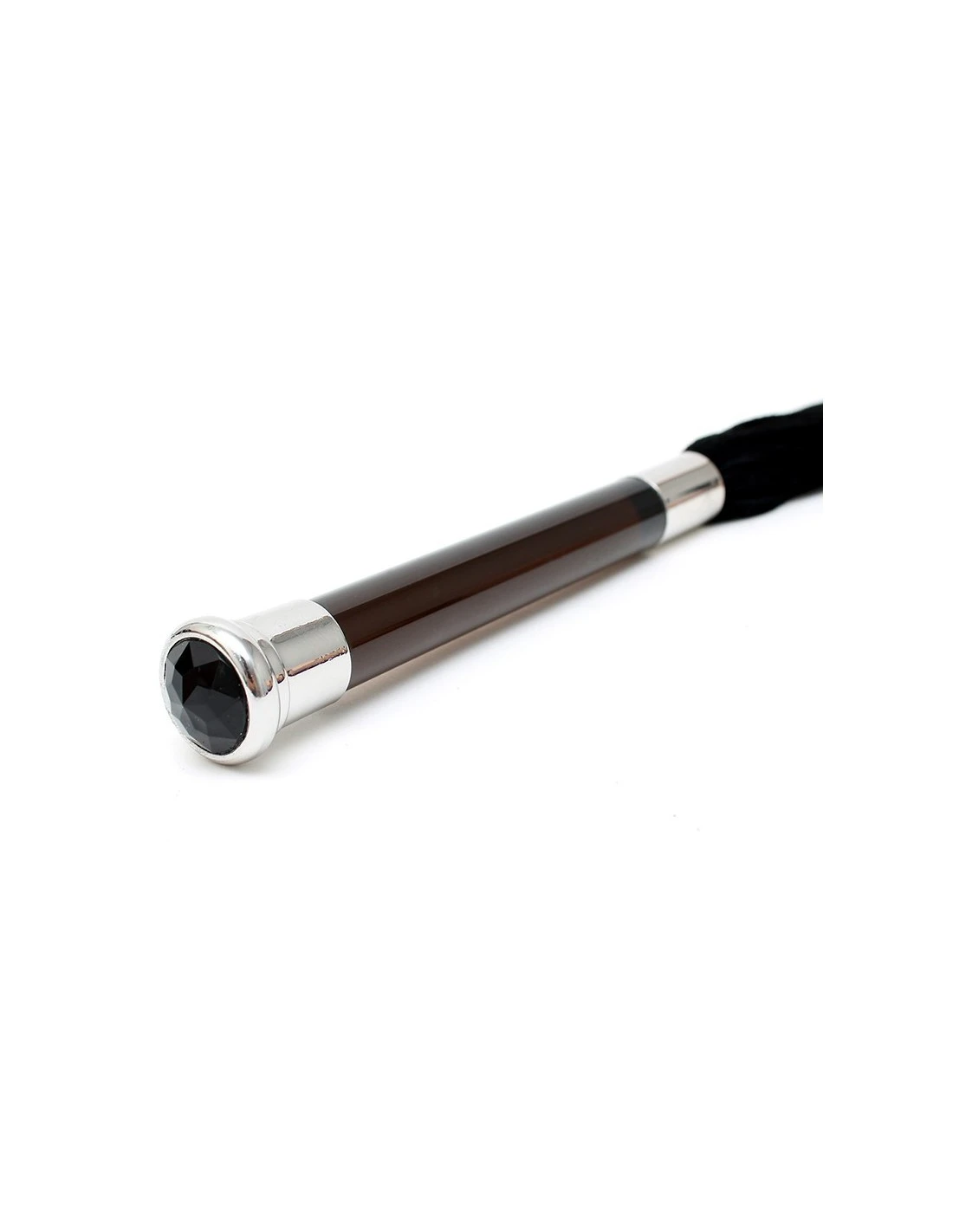 Deze flogger heeft een glazen handvat en kristal voor decoratie.