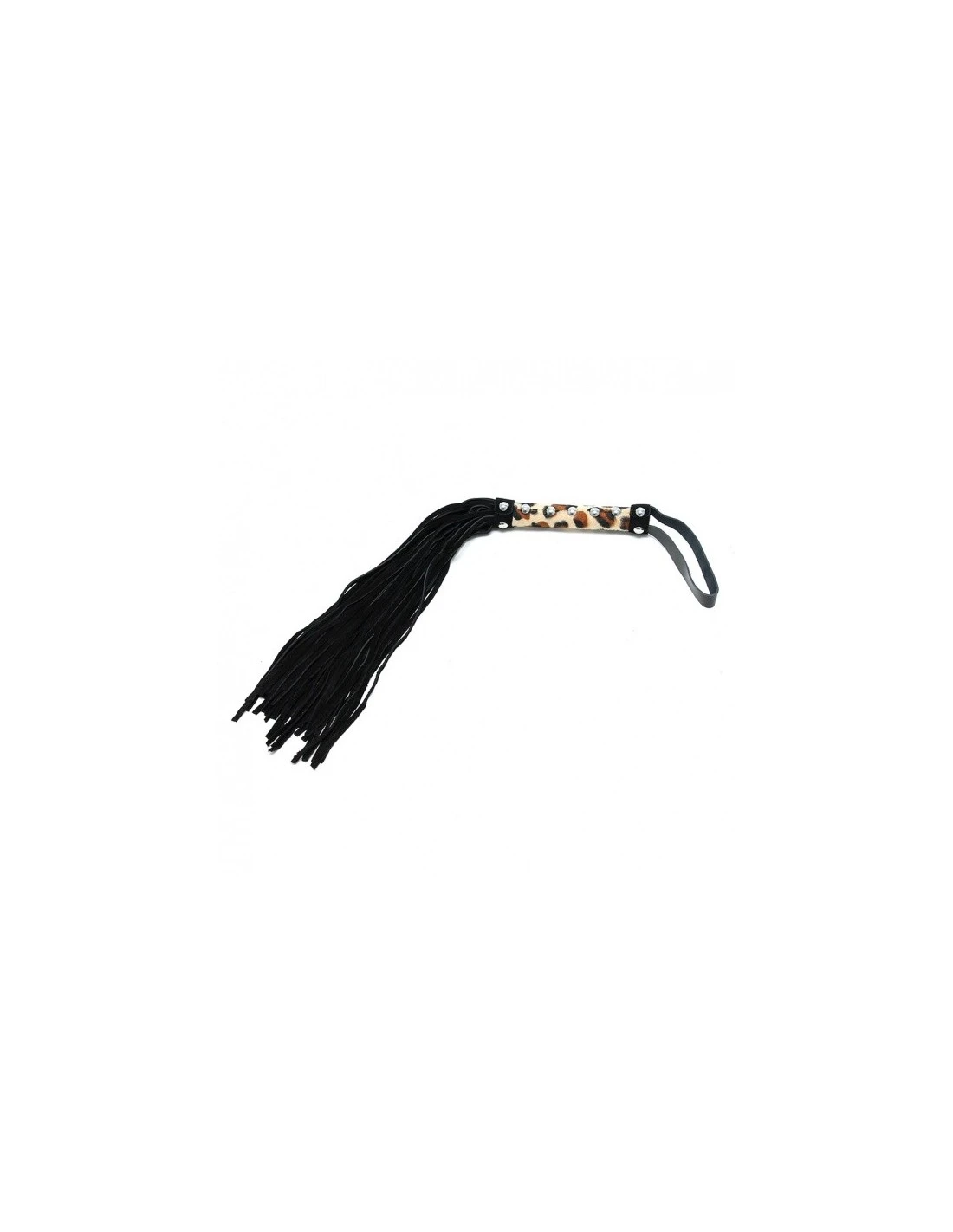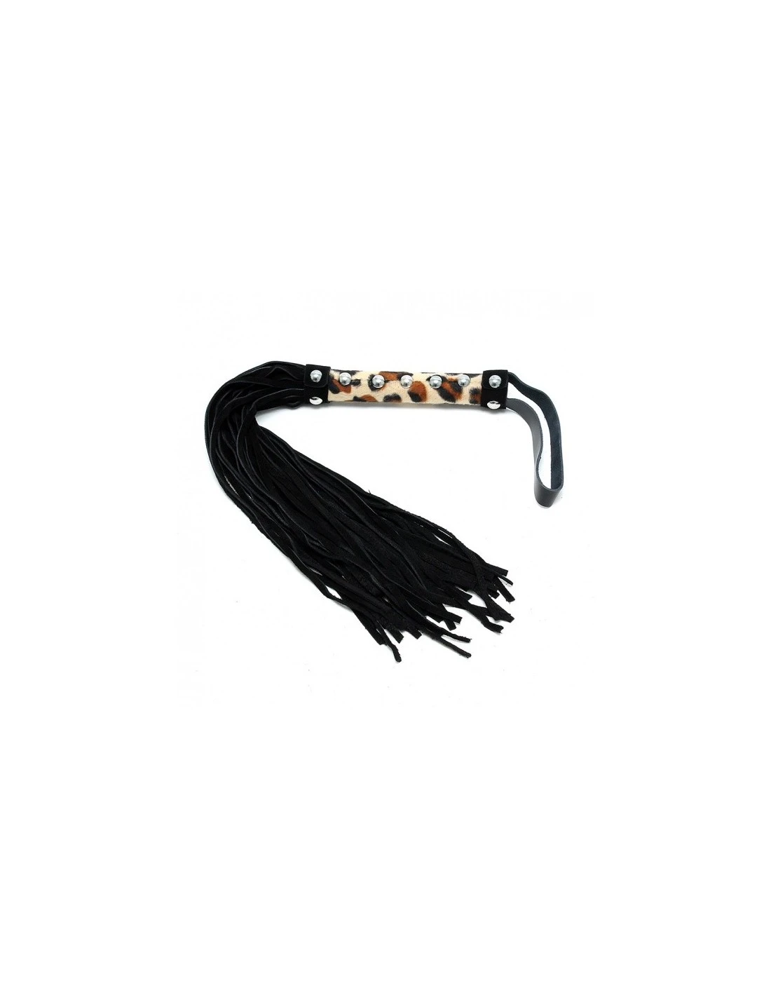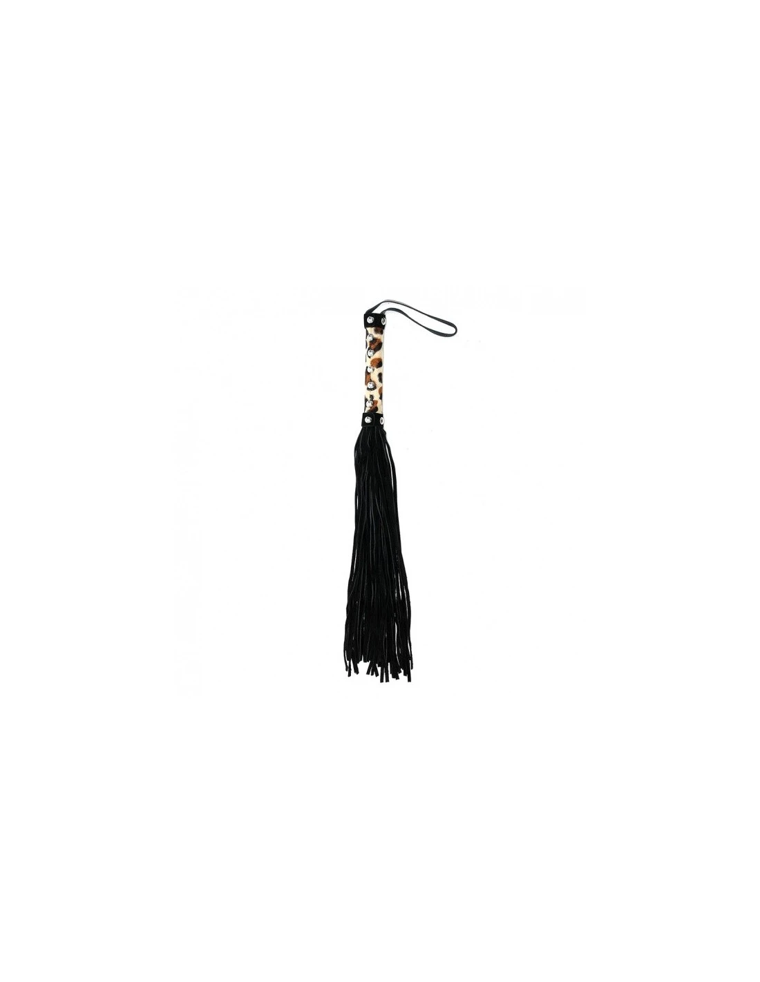Het handvat heeft een leopard print en 36 suède leren strengen.