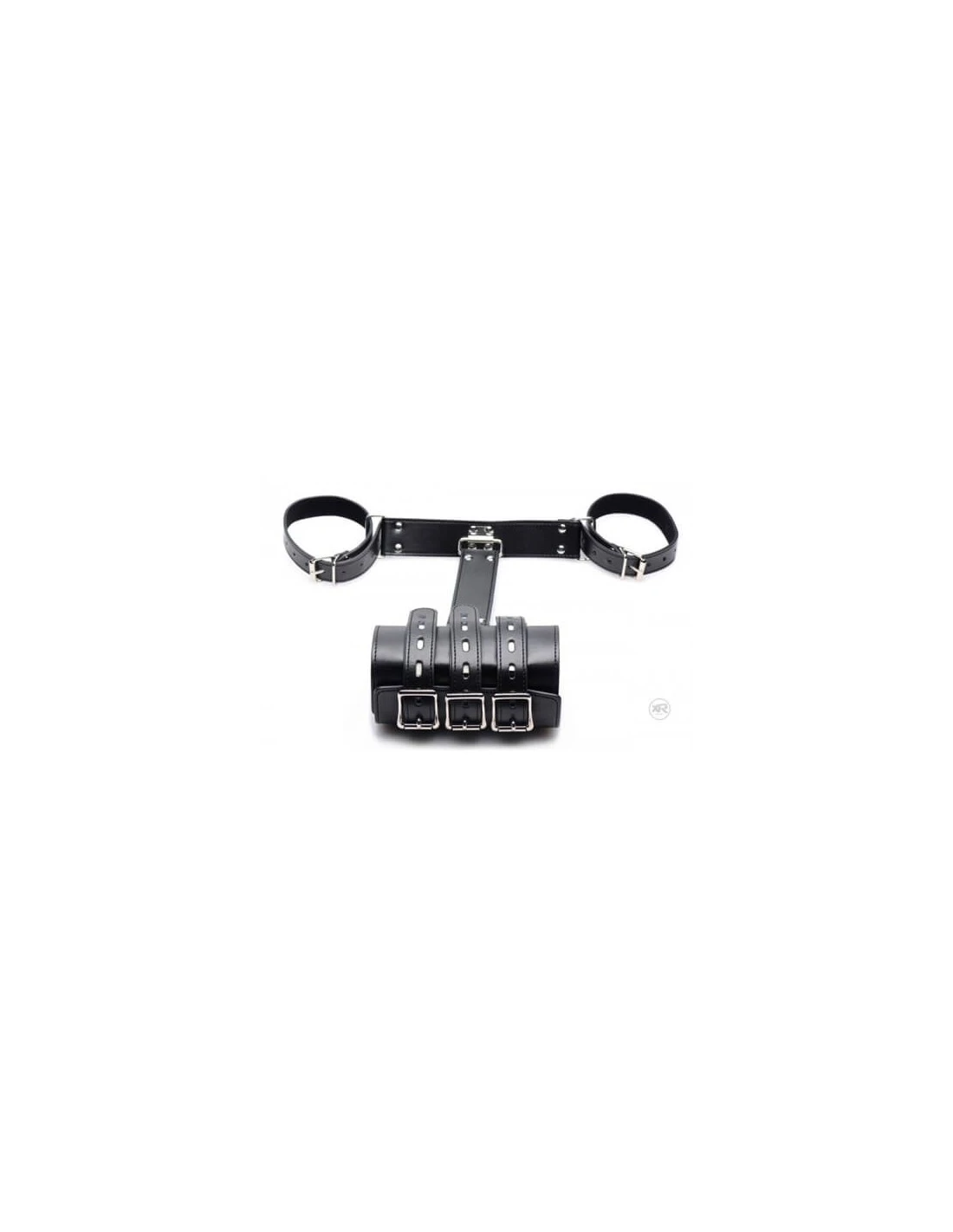 Dit bondageharnas wordt gedragen rondom de bovenarmen en op de rug.