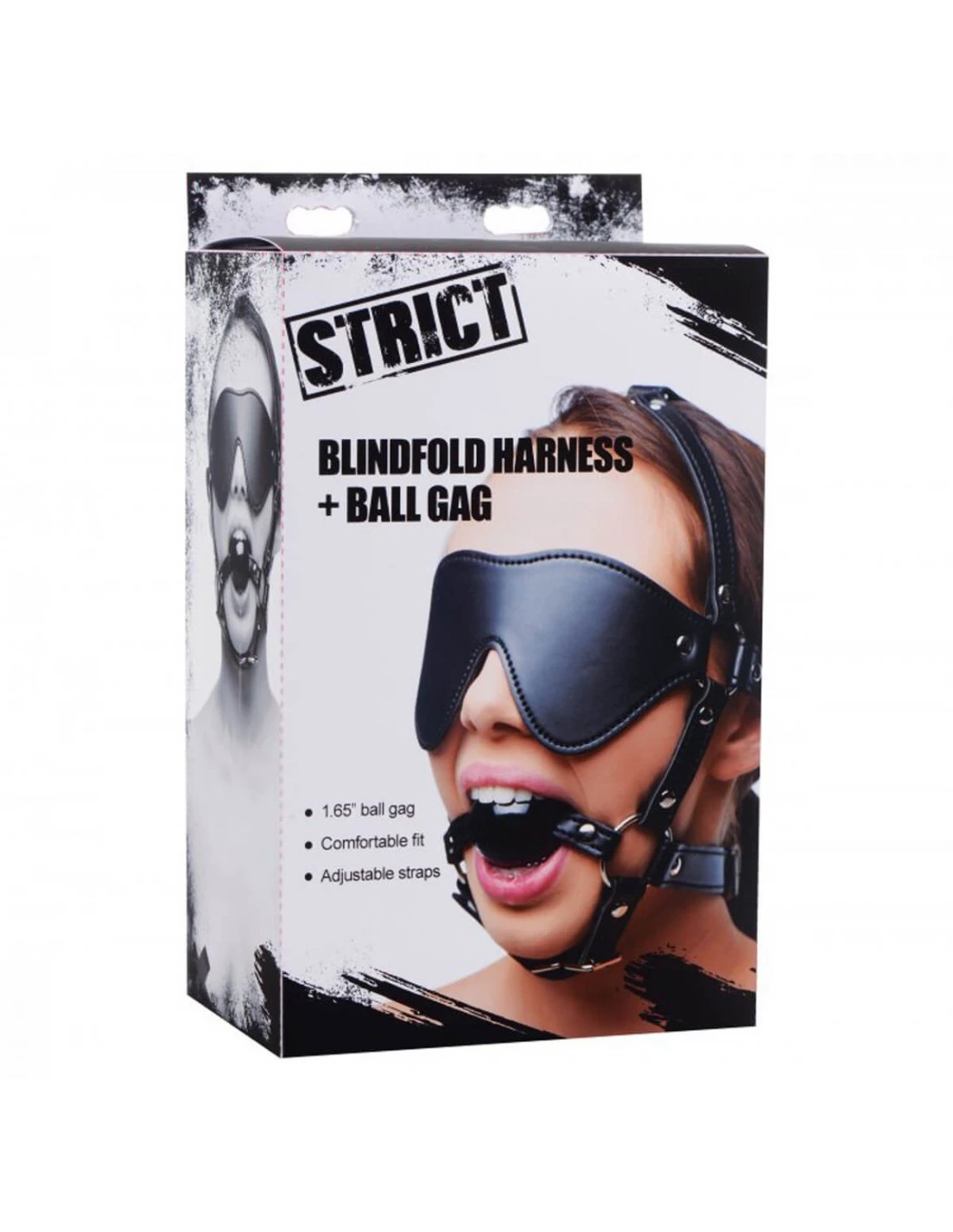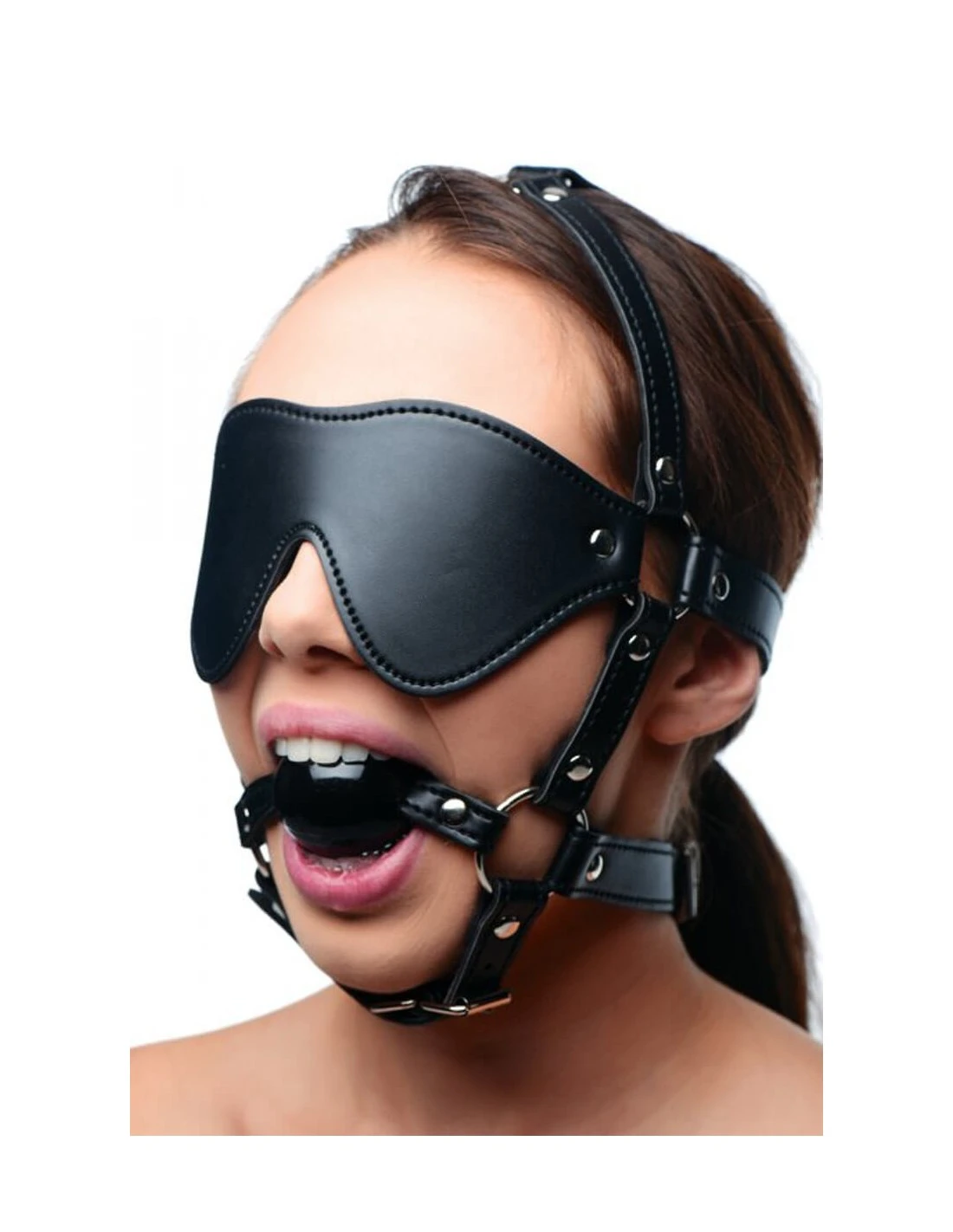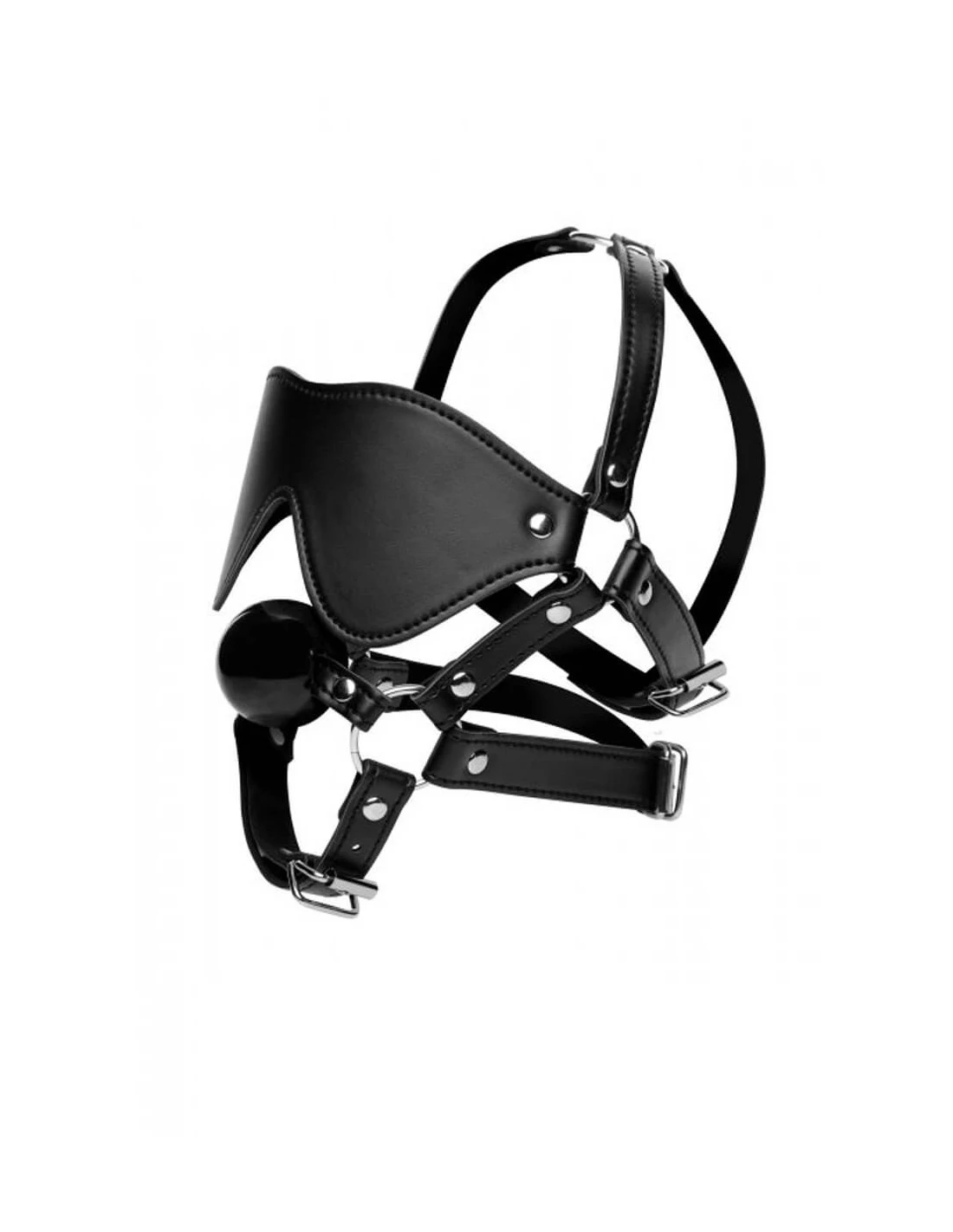 Het kunstleren masker bedekt de ogen en is voorzien van een ballgag.