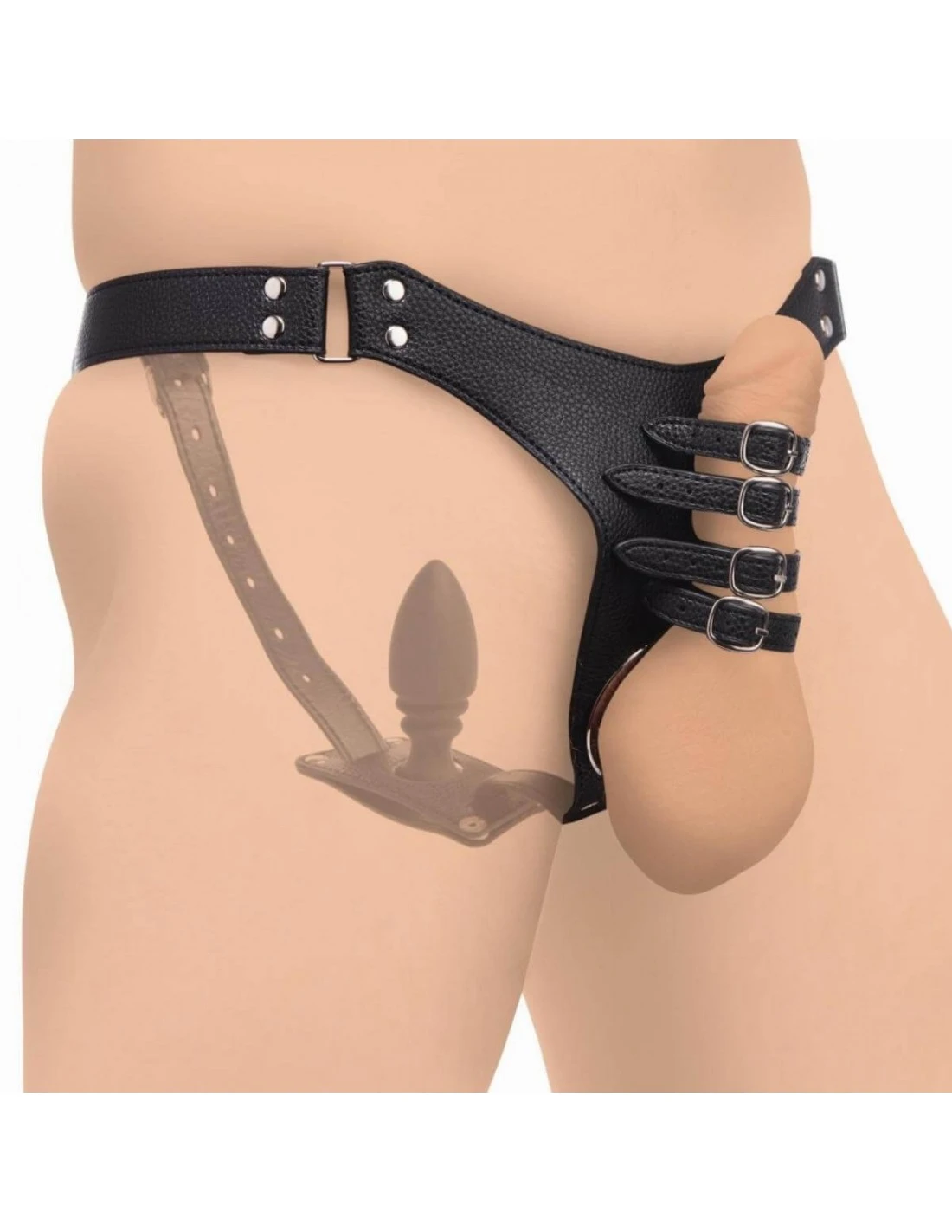 De kuisheidsgordel is volledig verstelbaar en heeft als extra een siliconen anaalplug geïntrigeerd die bij het dragen duidelijk voelbaar zal zijn.