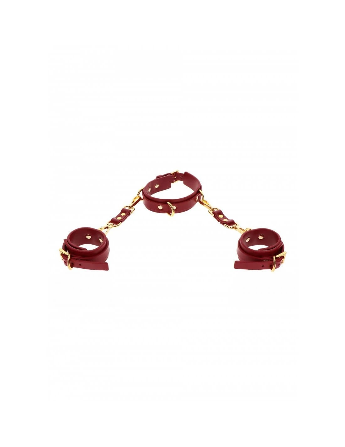 Deze stijlvolle halsband en handboeien kunnen worden gedragen als modeaccessoire of om te genieten van een goede BDSM-sessie.