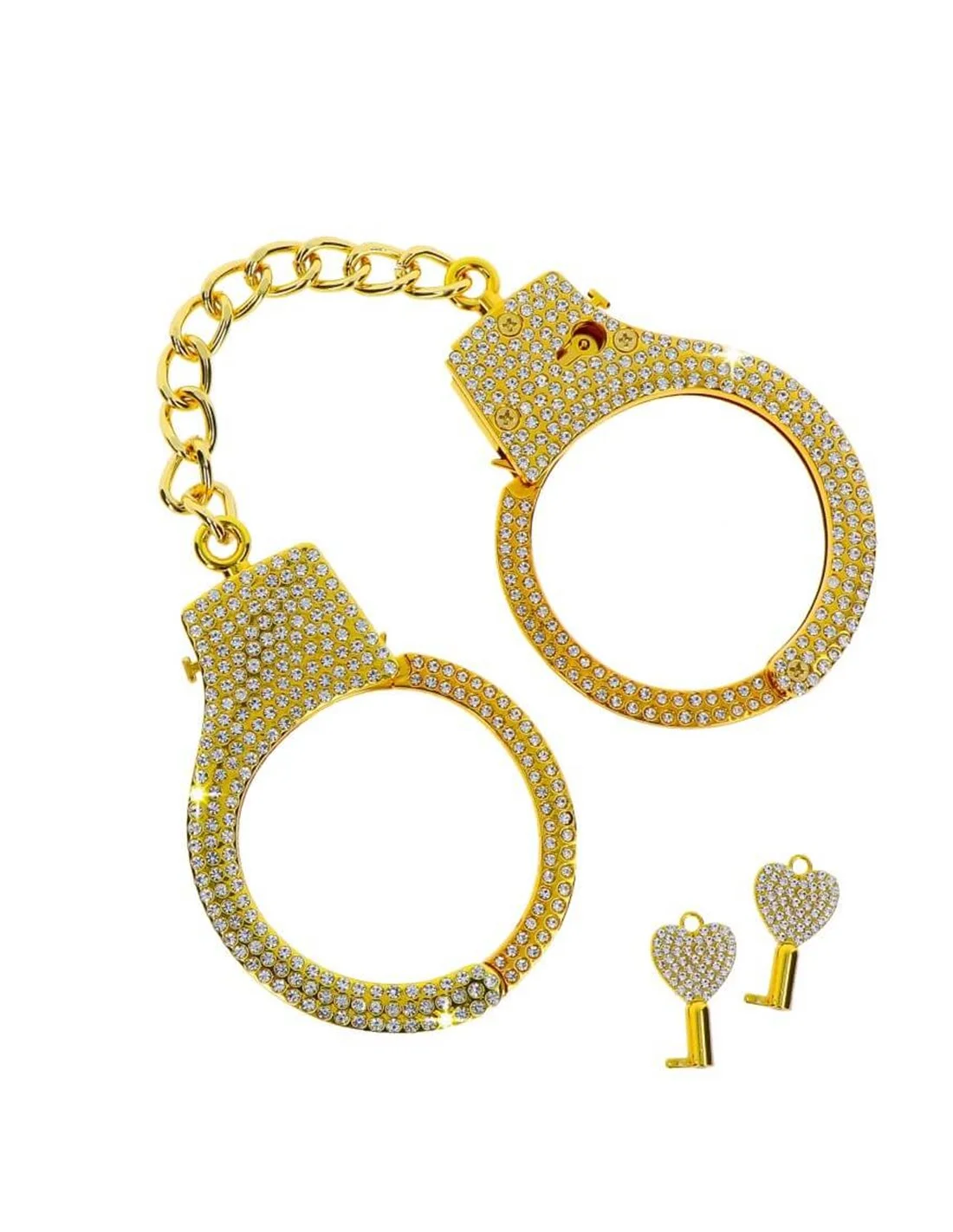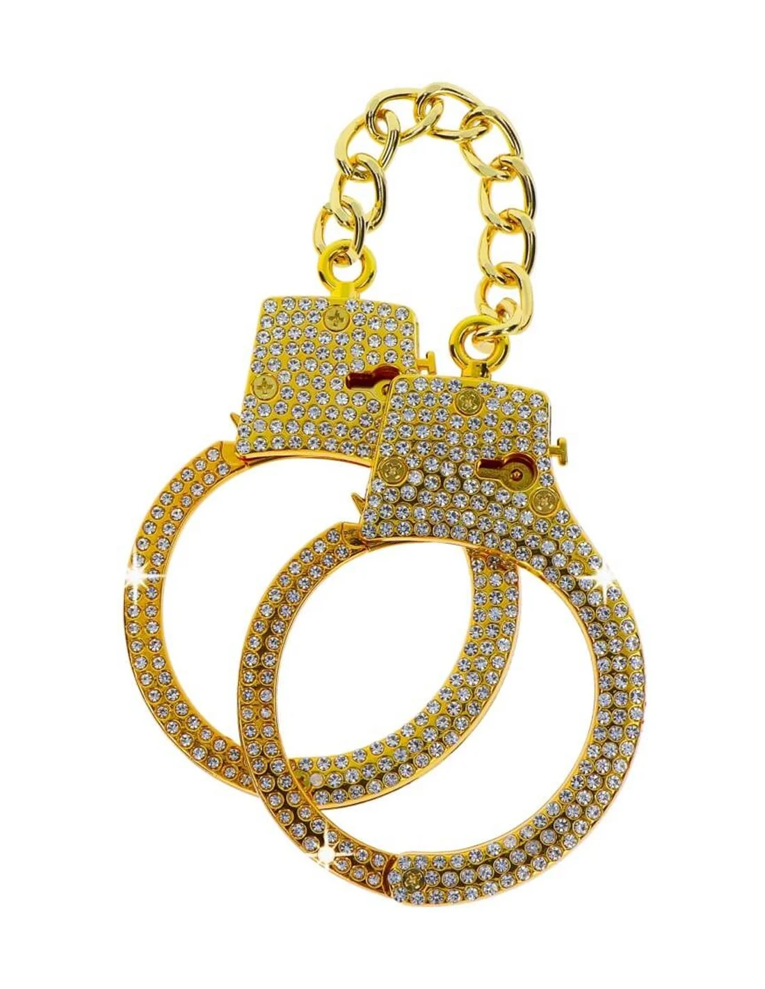 Blijf in stijl en houd de controle over je onderdanige met deze zware, vergulde, met strassteentjes ingelegde handboeien.