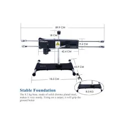 - Deze seksmachine is extreem krachtig en veelzijdig met een verstelbare duwstanglengte, instelbare stuwkrachtdiepte van 2.54 cm – 15 cm en verstelbare voor- en achterpoten voor verschillende posities