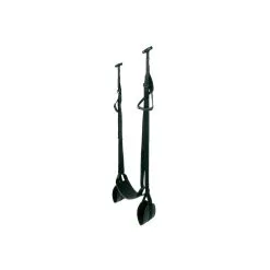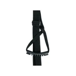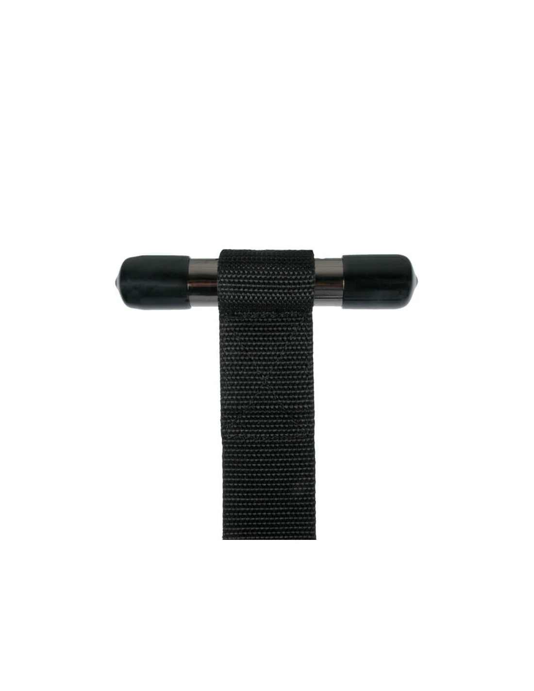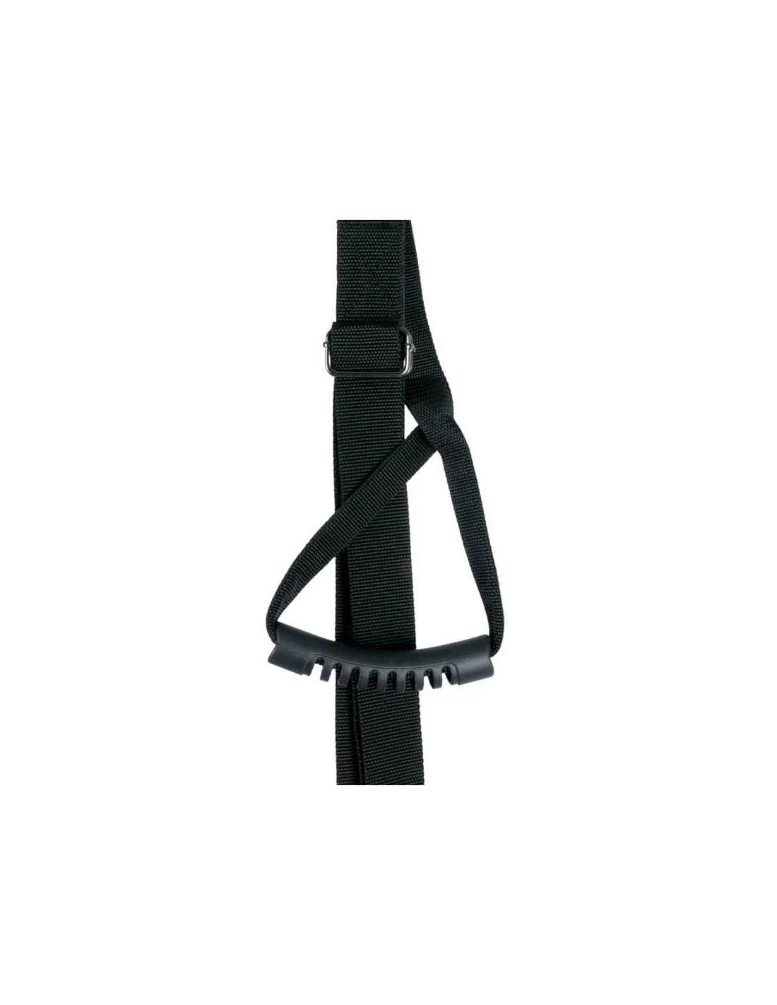 Ga zitten, doe je benen door de lussen en hou de handvaten boven je hoofd.